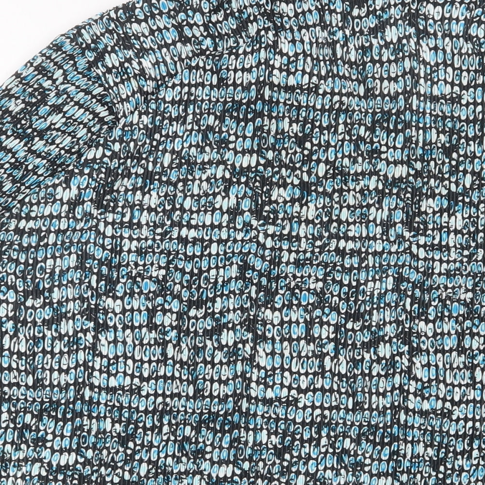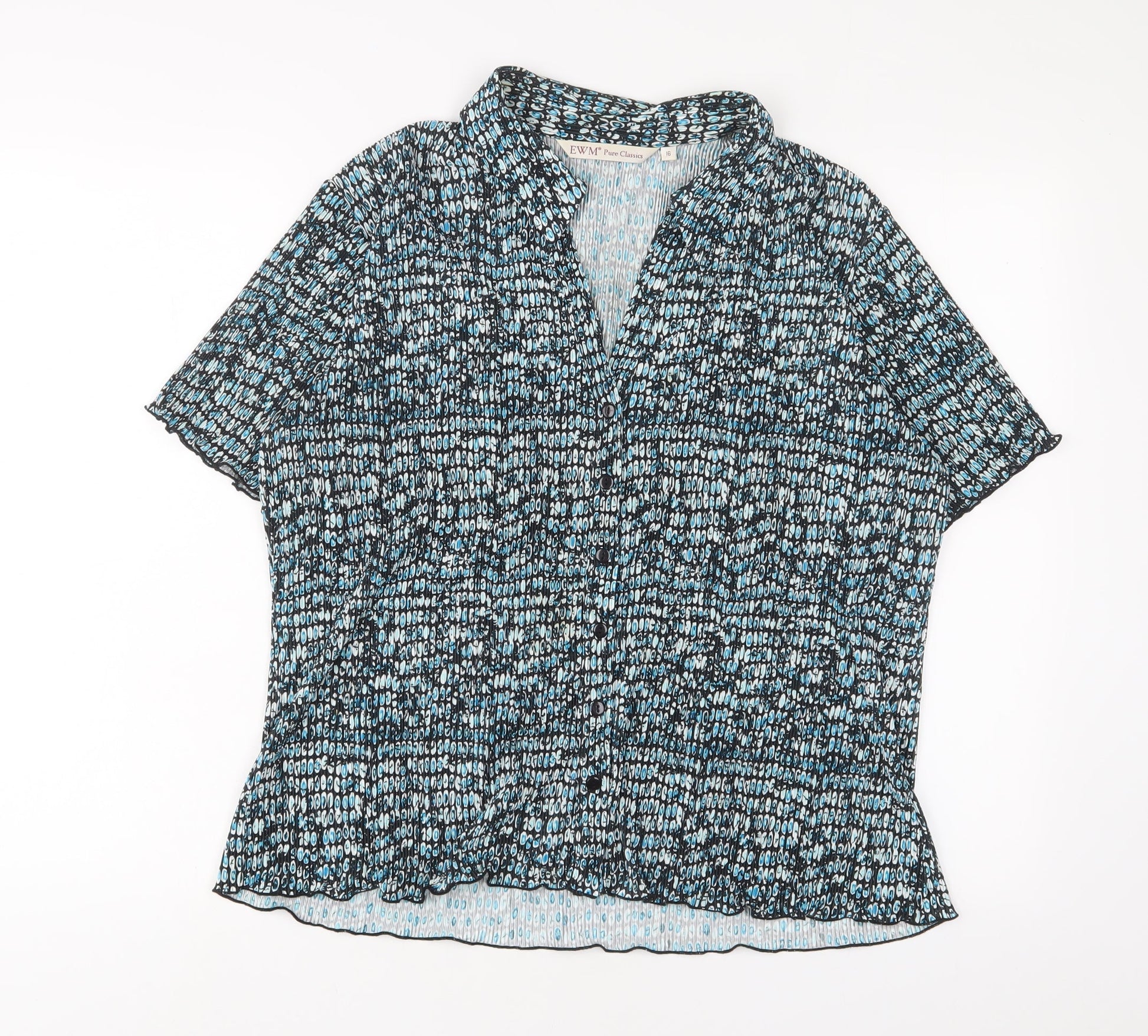 EWM Womens Blue Geometric Polyester Basic Button-Up Size 16 Collared - Pleated