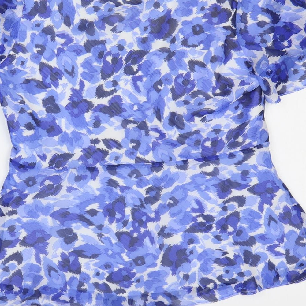 EWM Womens Blue Geometric Polyester Basic T-Shirt Size 14 V-Neck