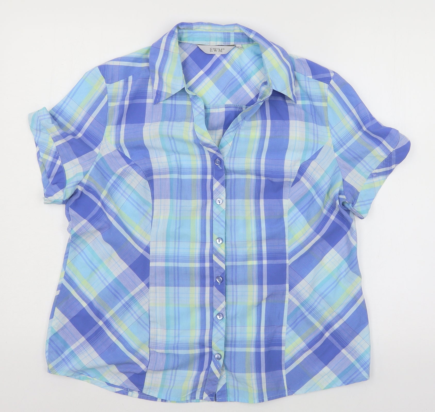 EWM Womens Blue Plaid Basic Button-Up Size 16