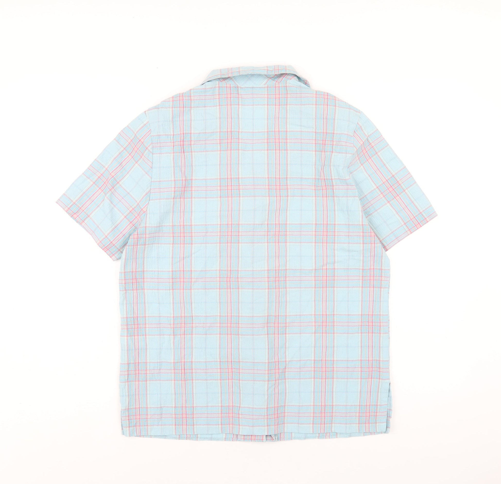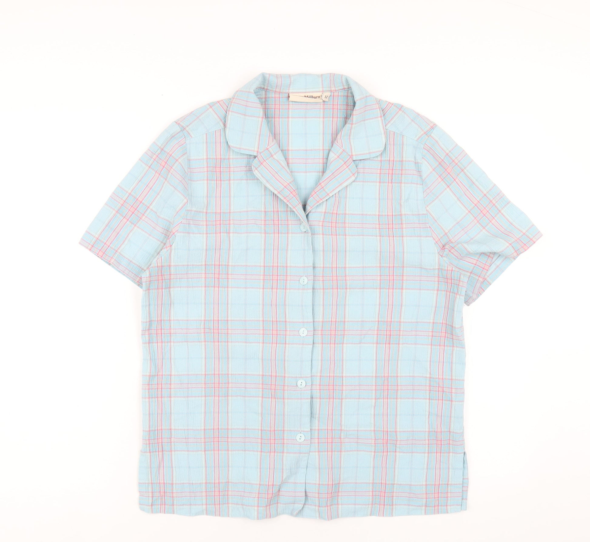 EWM Womens Blue Plaid Polyester Basic Button-Up Size 12 Collared