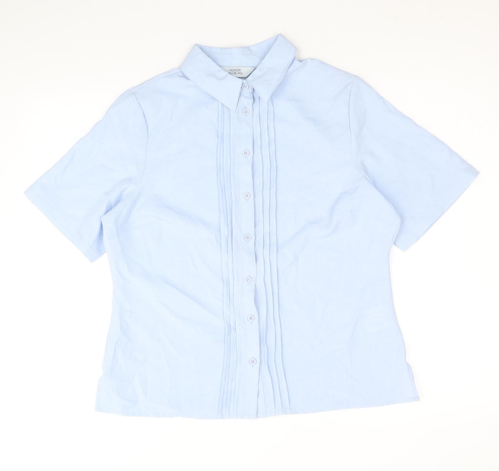 EWM Womens Blue Polyester Basic Button-Up Size 12 Collared