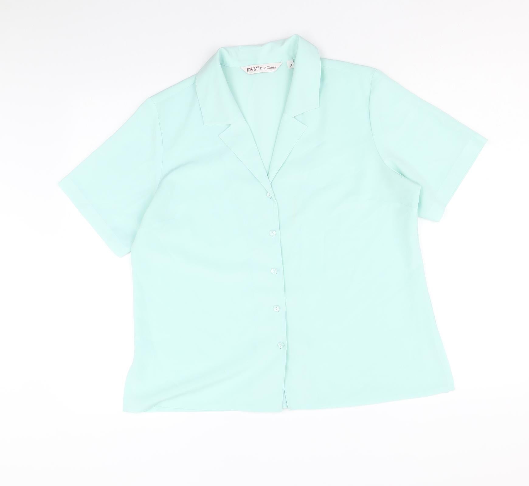 EWM Womens Blue Polyester Basic Tank Size 14 V-Neck