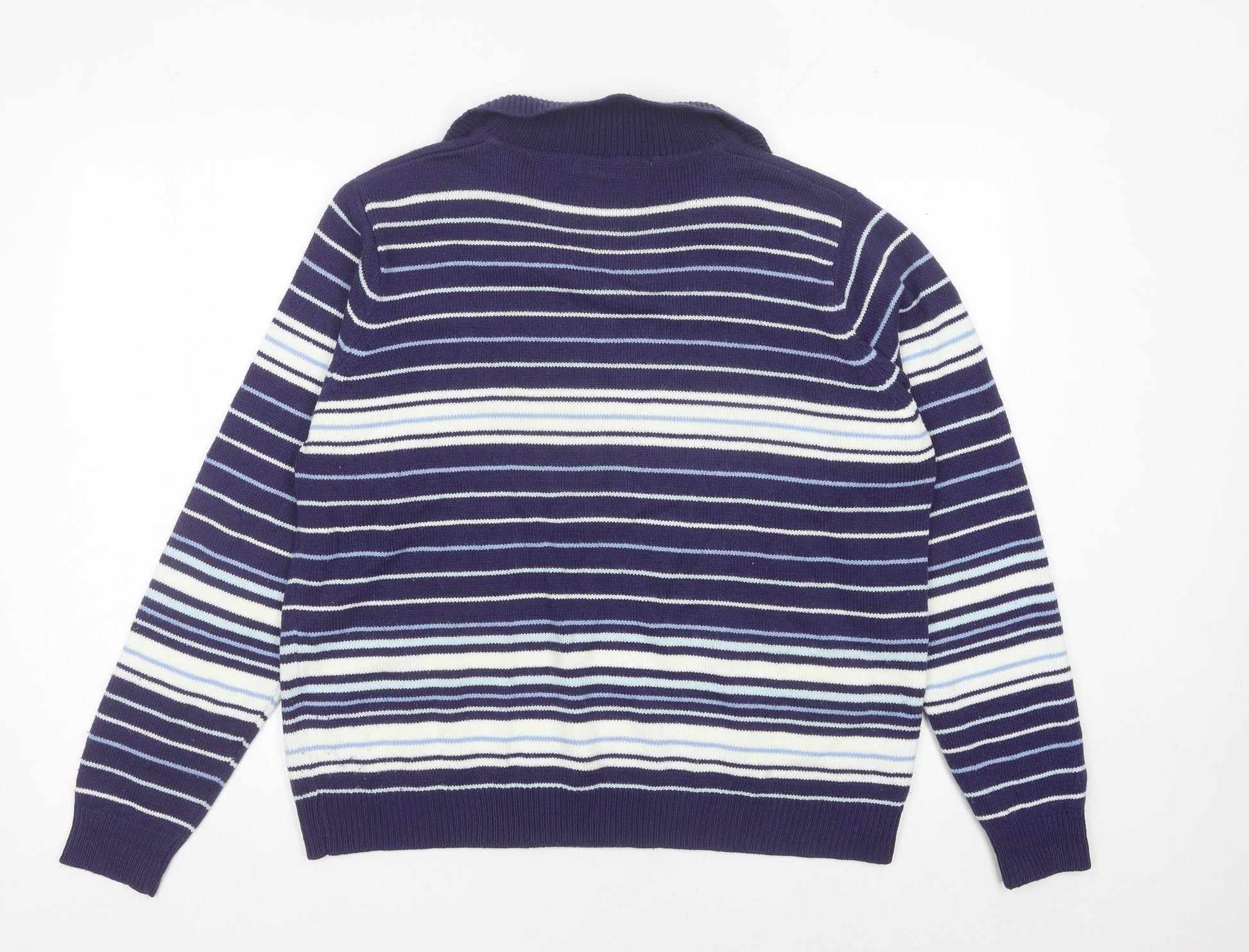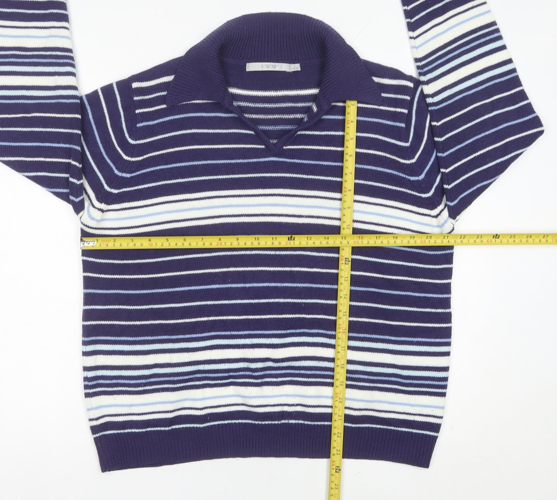 EWM Womens Blue Striped Collared Pullover Jumper Size 18-20