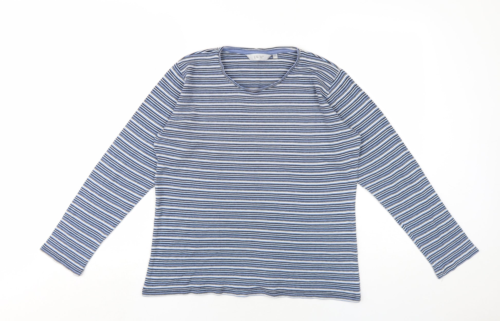 EWM Womens Blue Striped Cotton Basic T-Shirt Size 14 Round Neck
