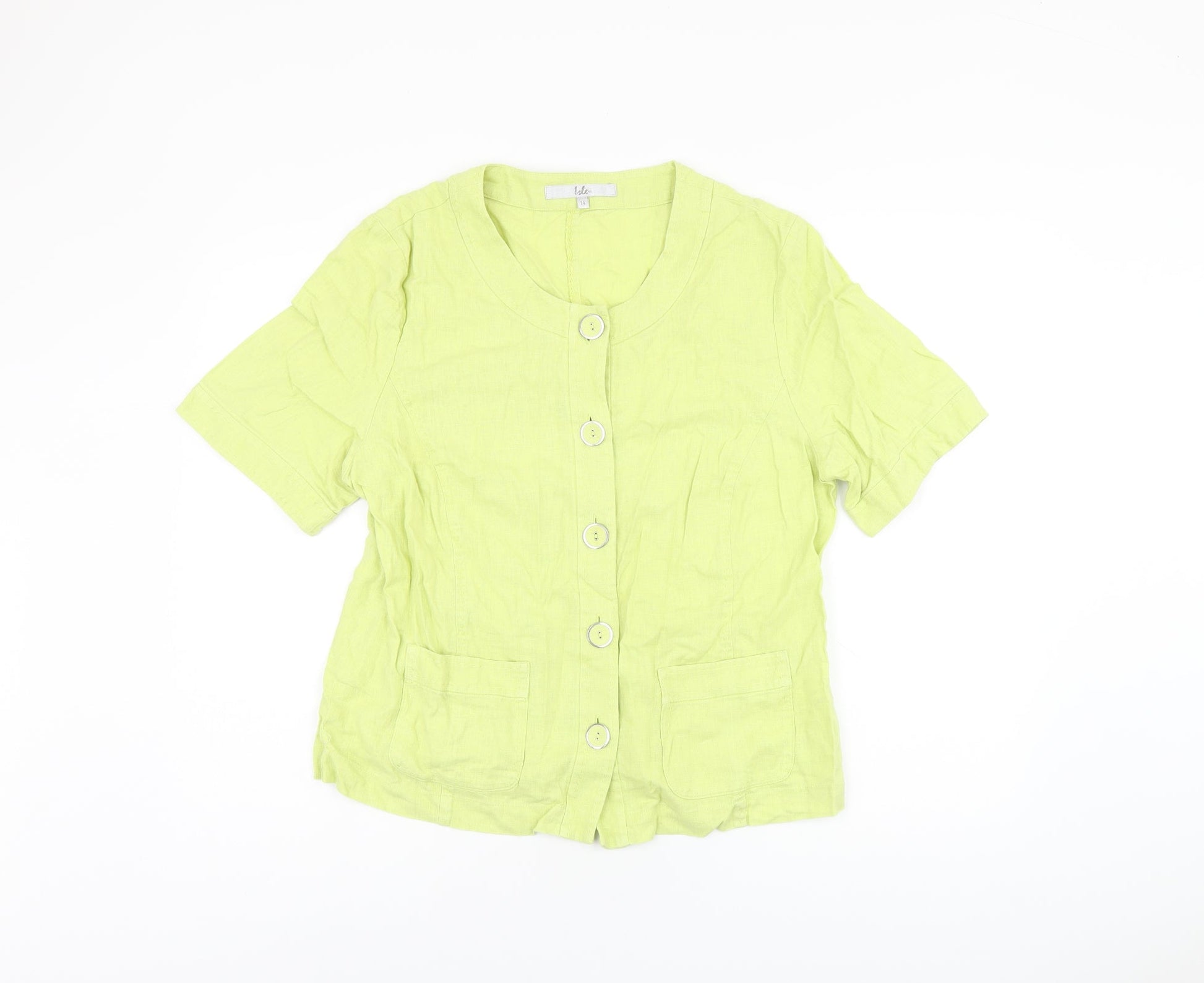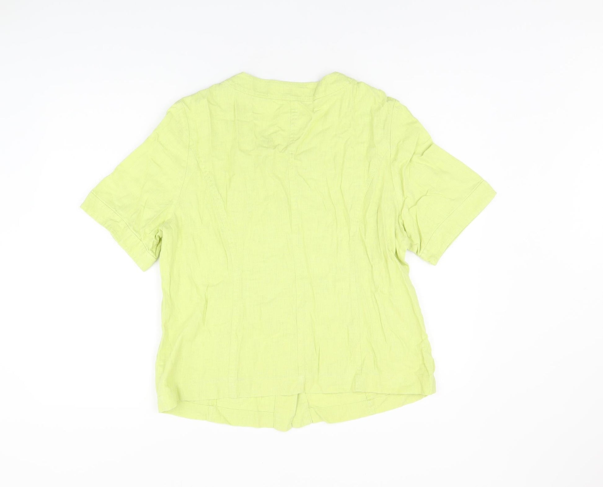 EWM Womens Green Linen Basic Button-Up Size 14 Round Neck