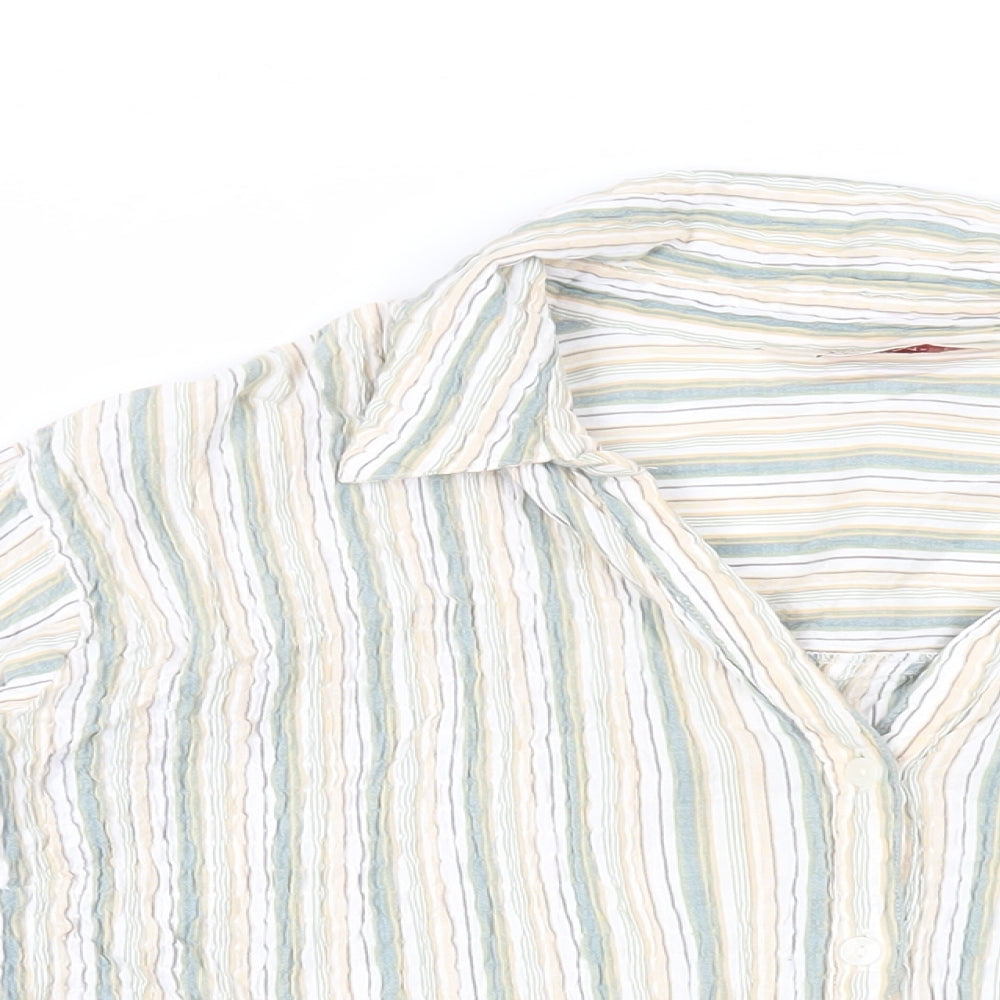 EWM Womens Green Striped Cotton Basic Button-Up Size 22 Collared