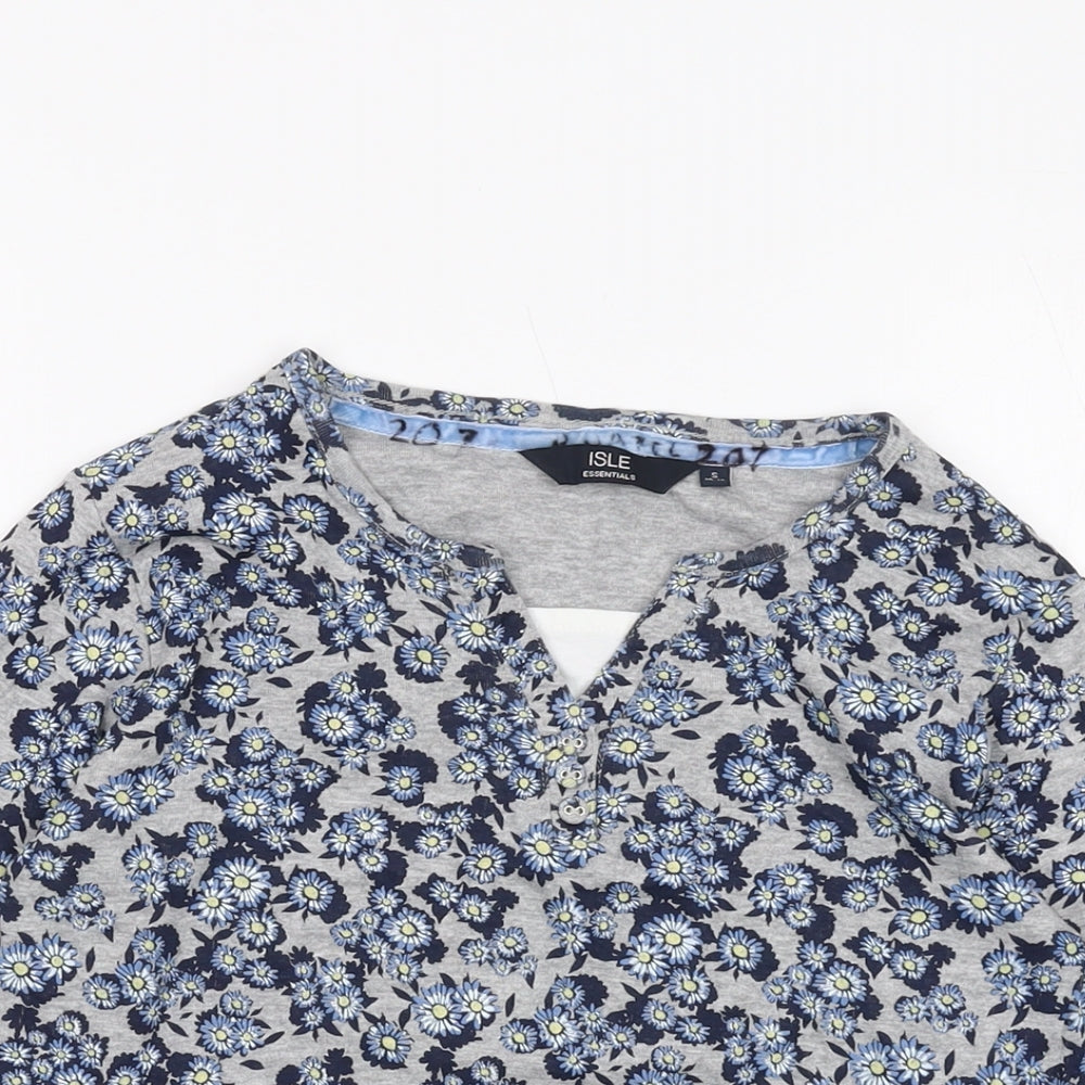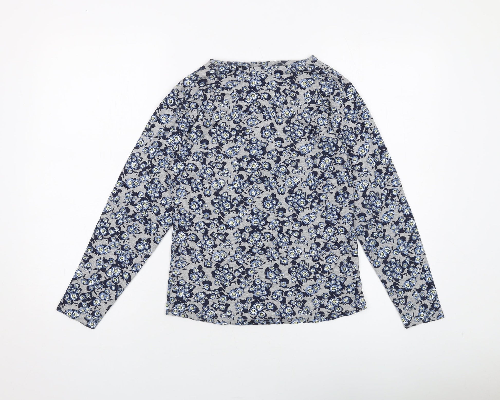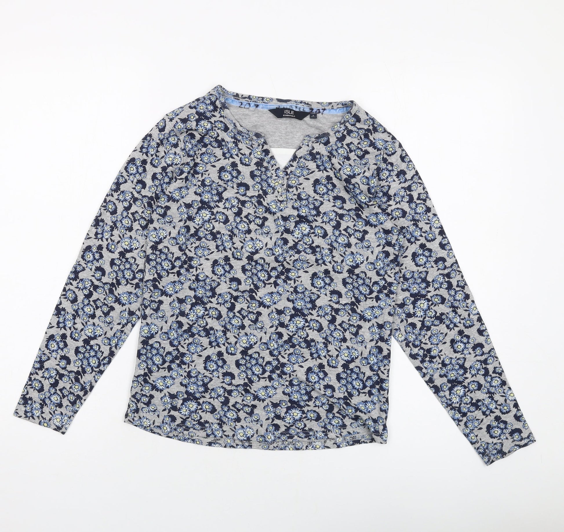EWM Womens Grey Floral Cotton Basic T-Shirt Size 10 V-Neck