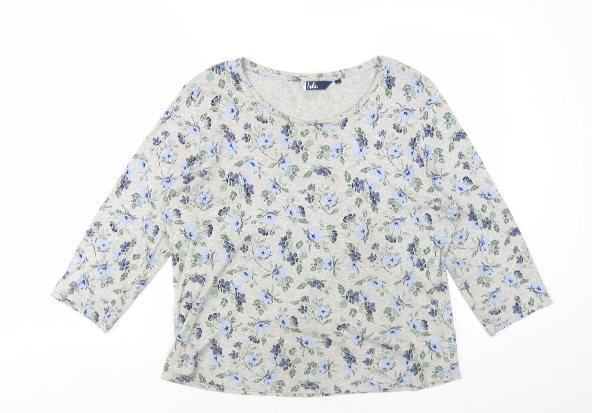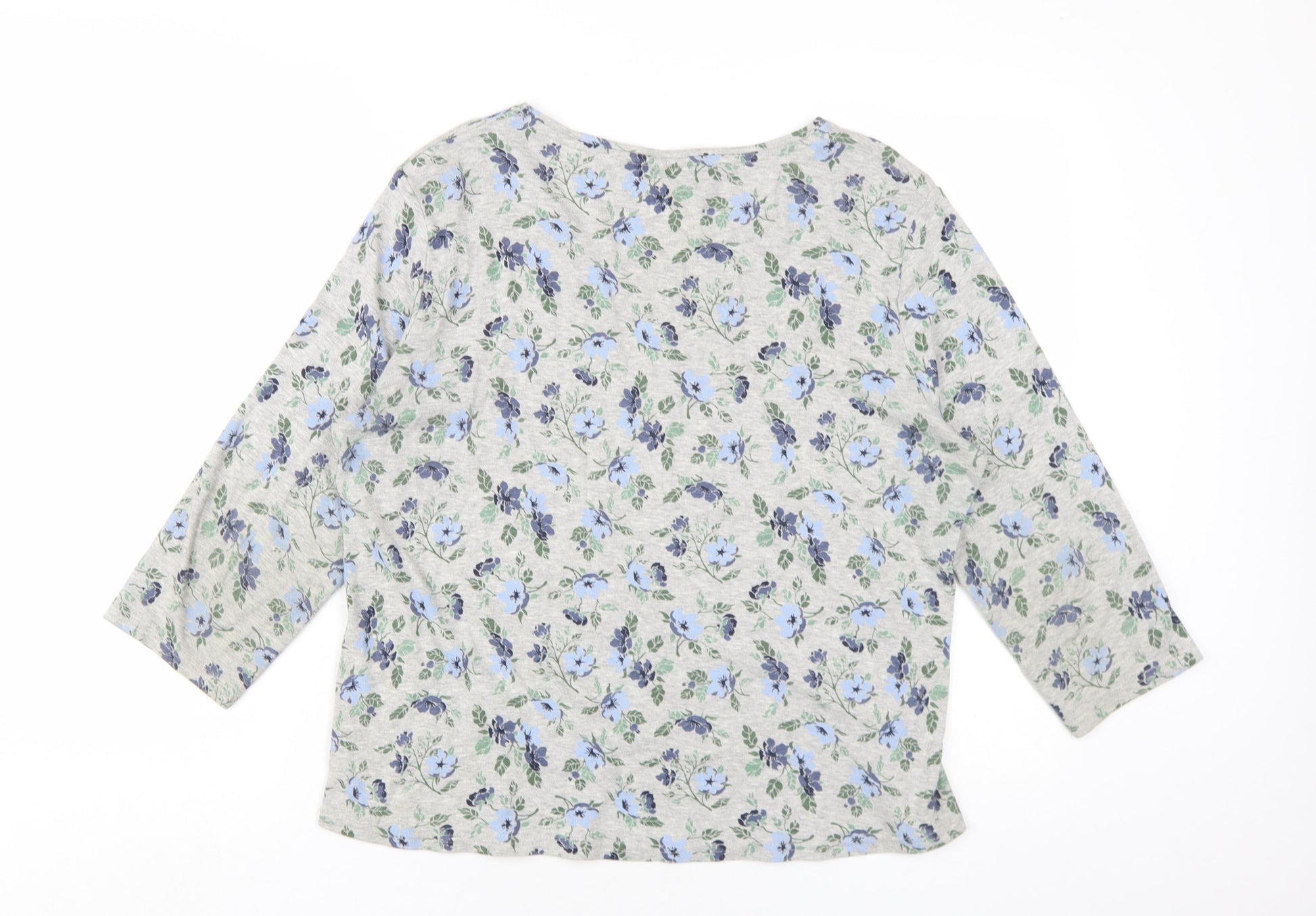 EWM Womens Grey Floral Cotton Basic T-Shirt Size L Round Neck