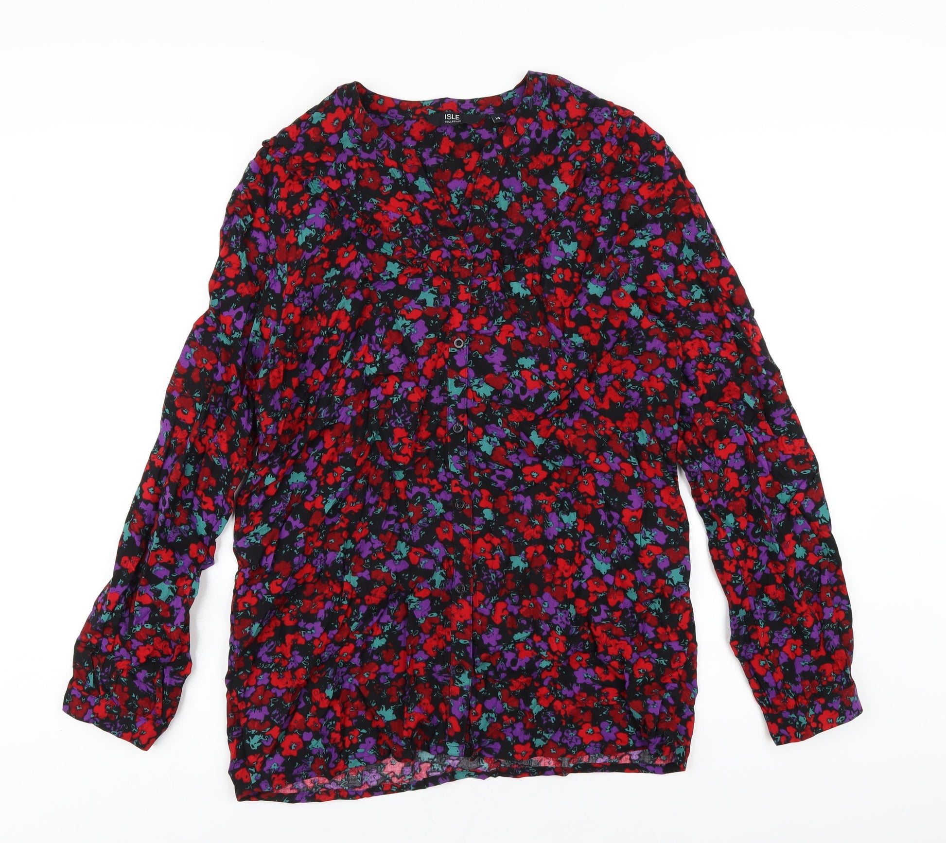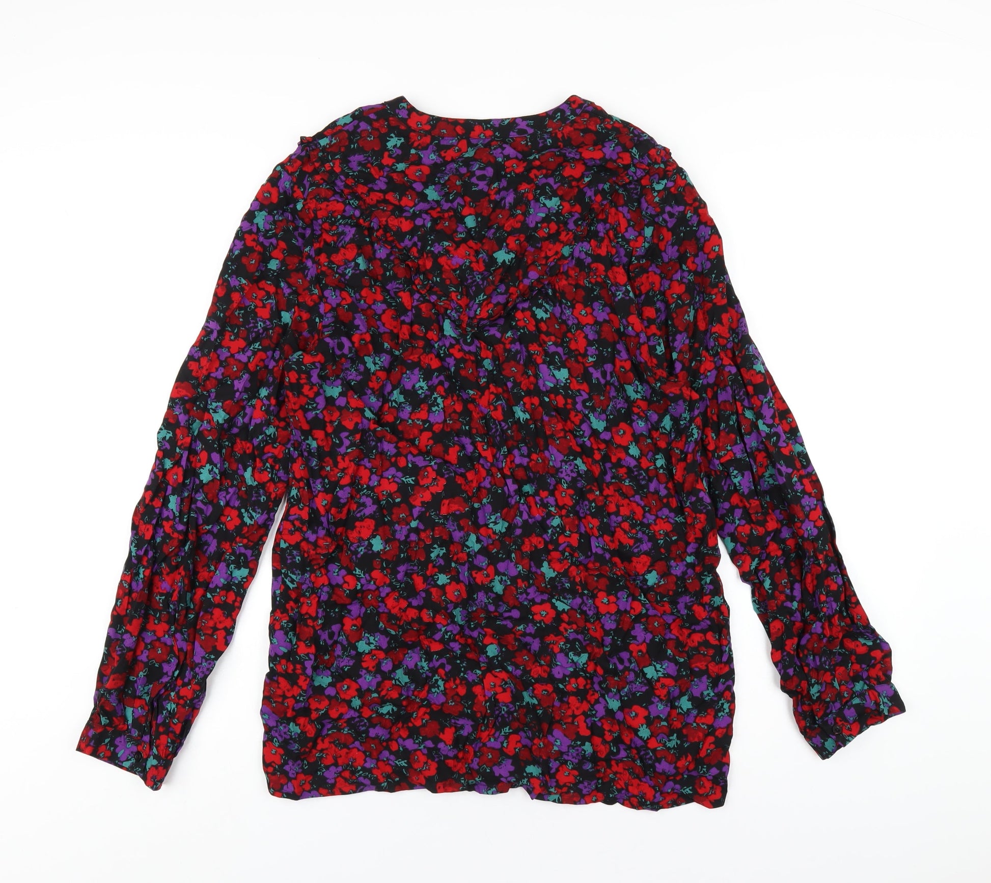 EWM Womens Multicoloured Floral Viscose Basic T-Shirt Size 14 V-Neck
