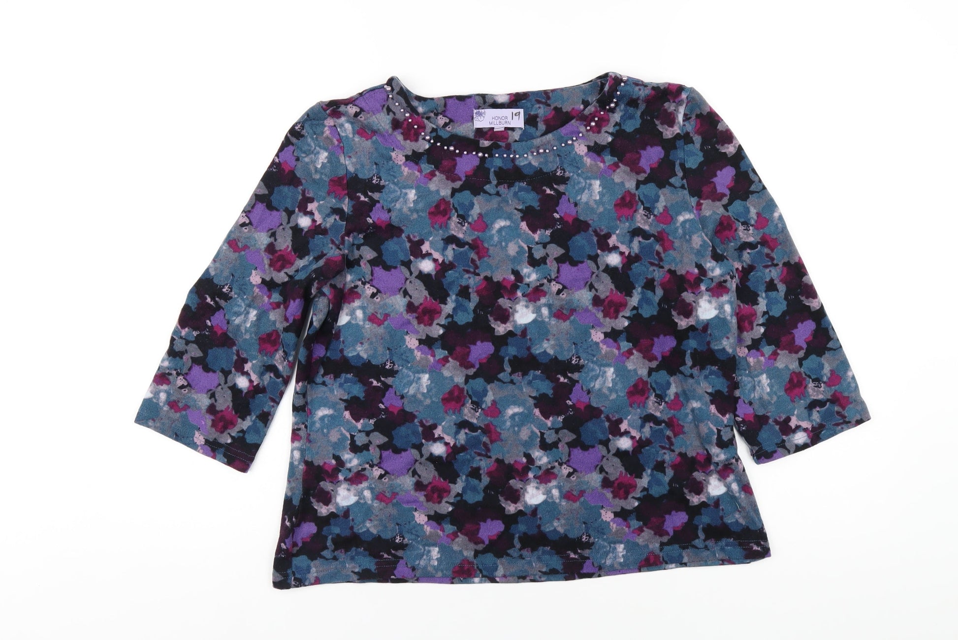 EWM Womens Multicoloured Polyester Basic T-Shirt Size 14 Round Neck - Beaded Neckline