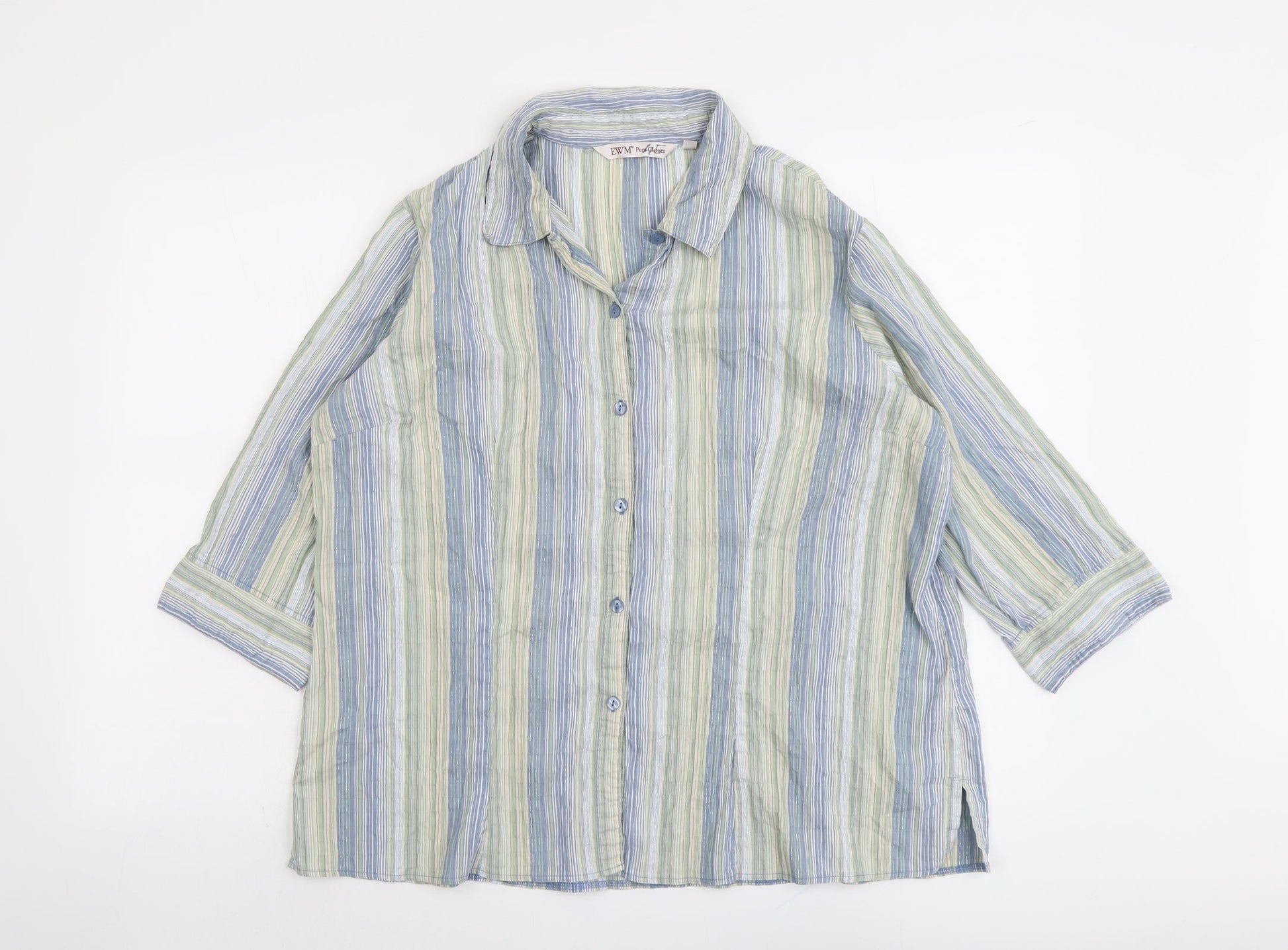 EWM Womens Multicoloured Striped Cotton Basic Button-Up Size 16 Collared