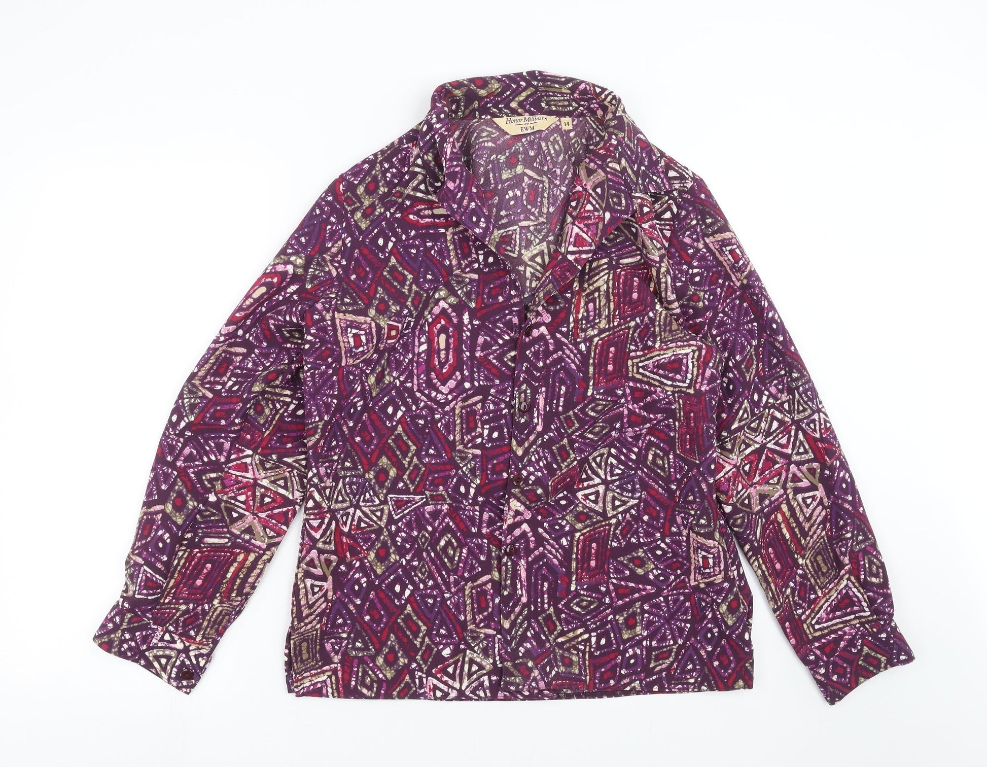 EWM Womens Purple Geometric Basic Blouse Size 14