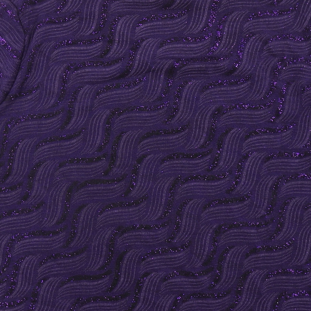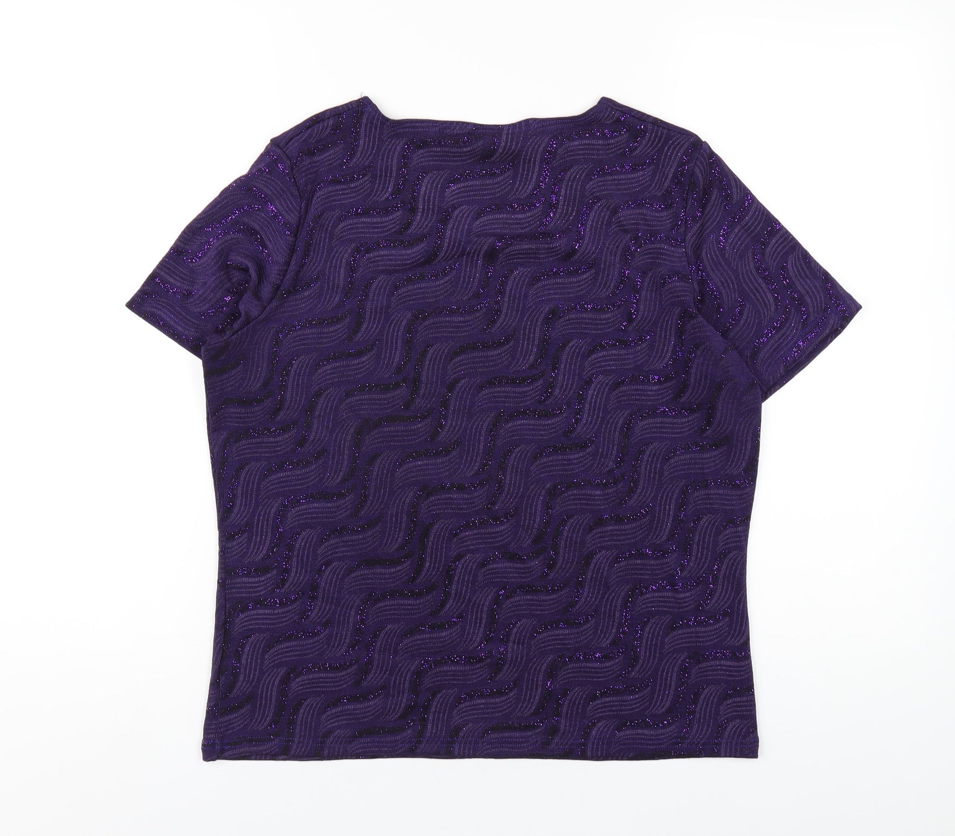 EWM Womens Purple Geometric Polyester Basic T-Shirt Size 14 Round Neck