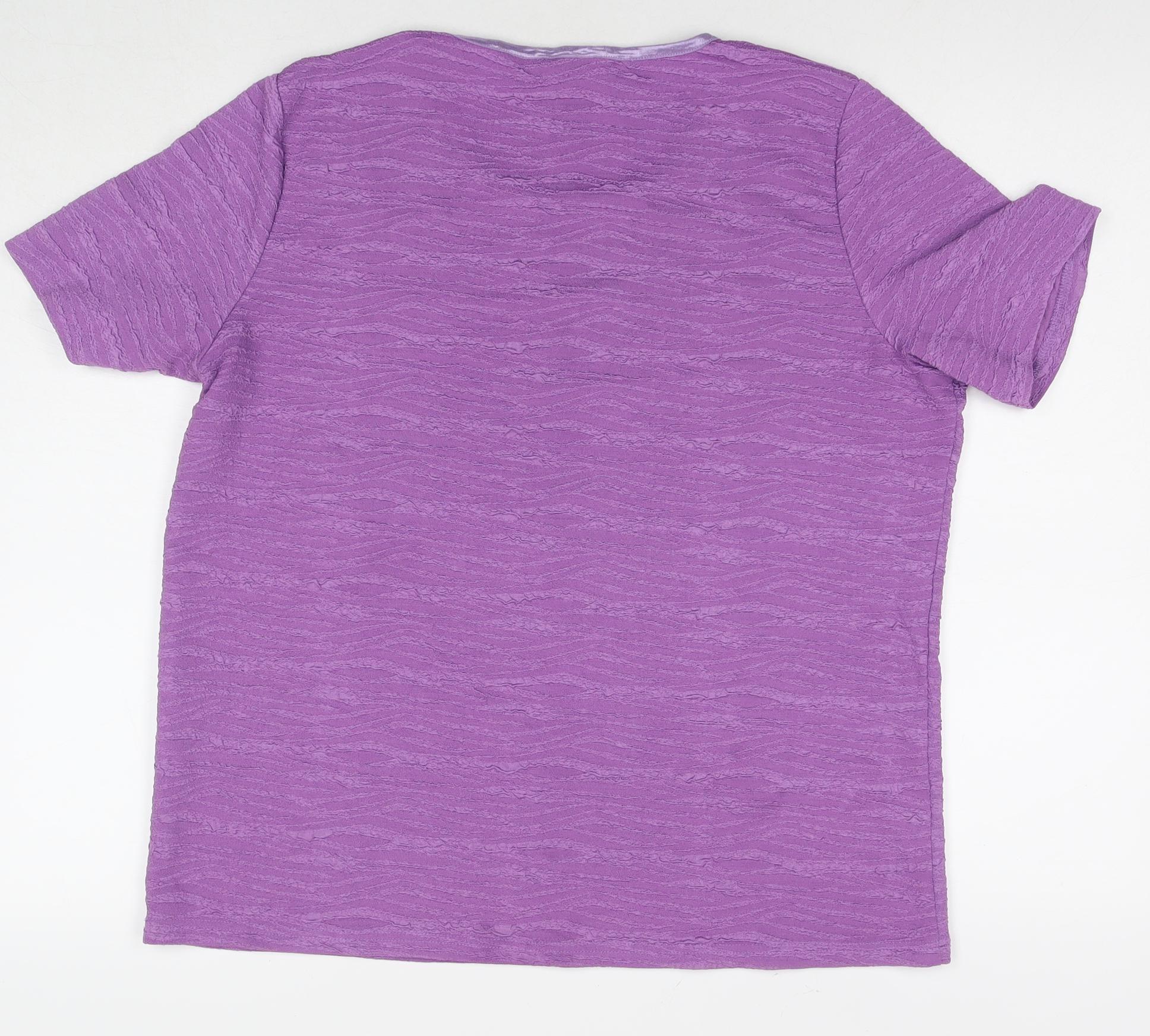 EWM Womens Purple Polyester Basic T-Shirt Size L Round Neck