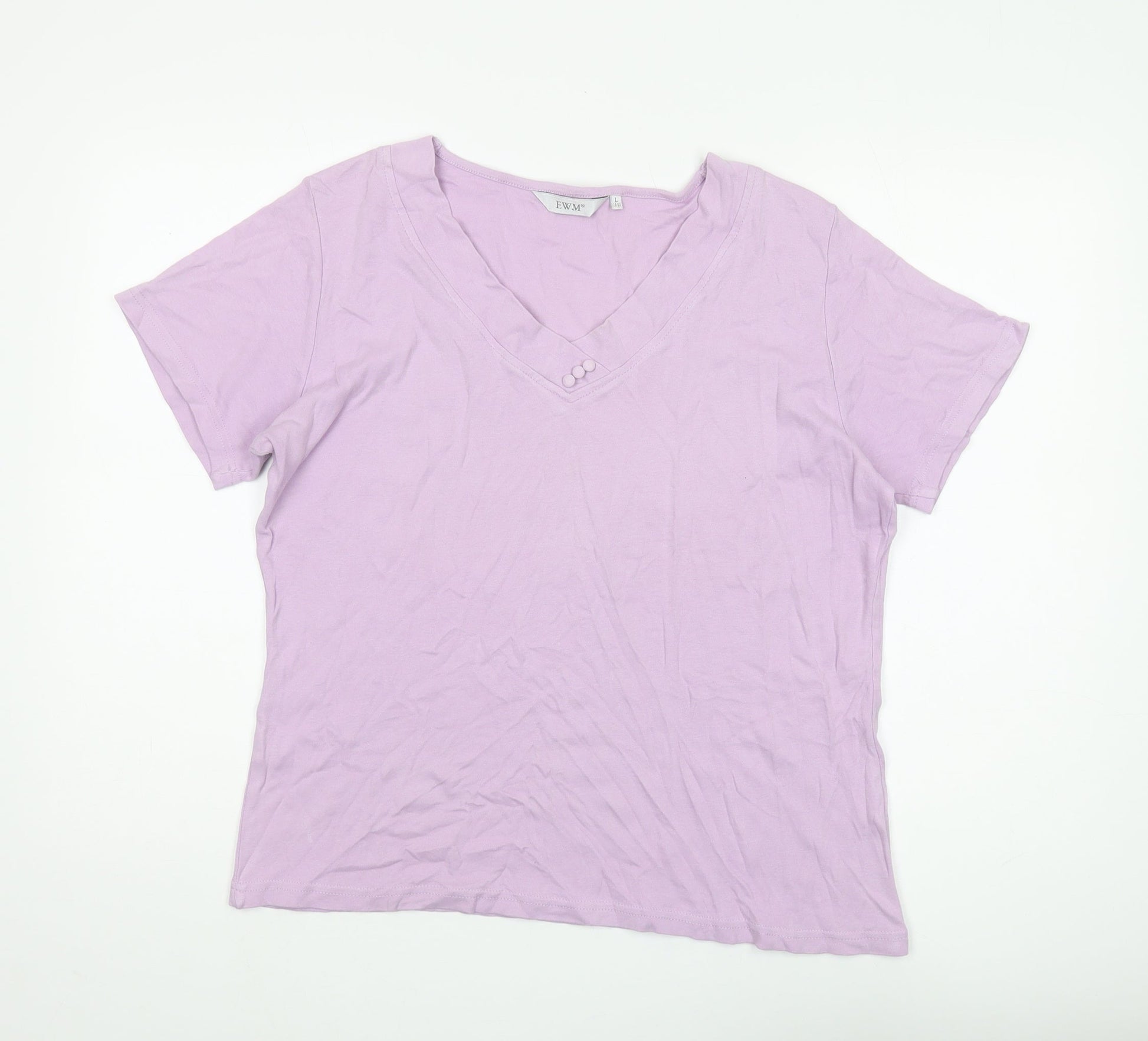 EWM Women's Purple V-Neck Cotton T-Shirt, L
