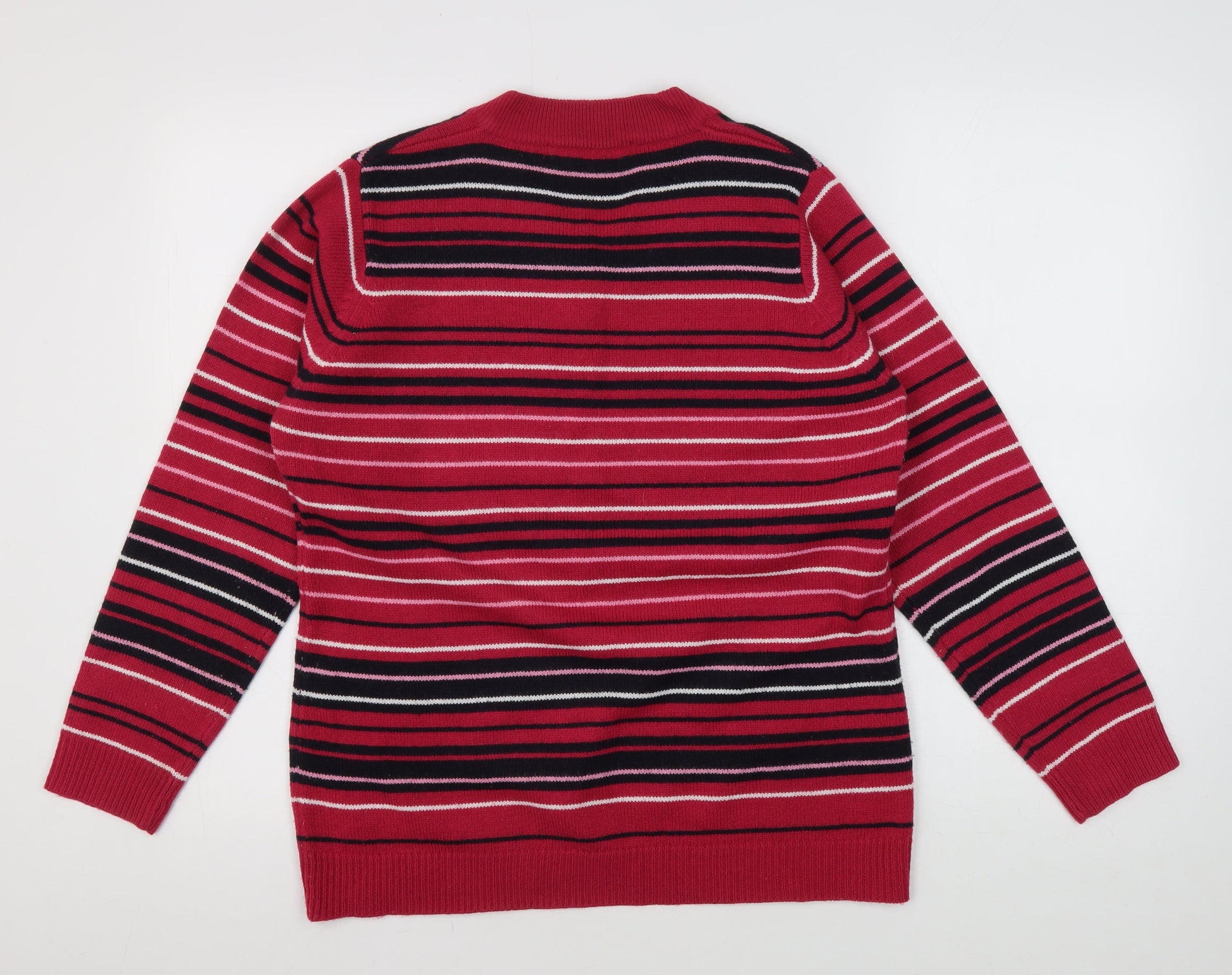 EWM Women's Red Striped V-Neck Jumper - Medium