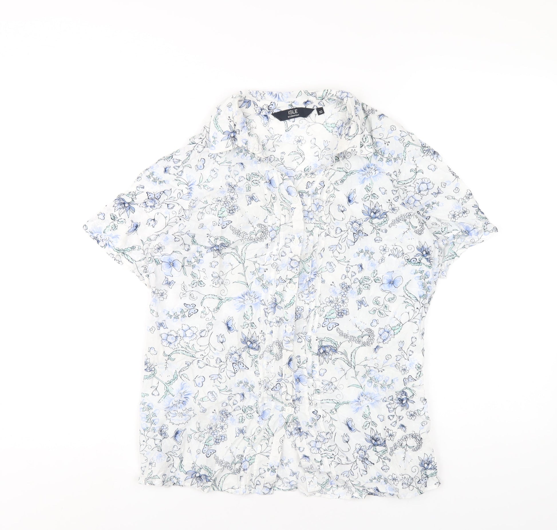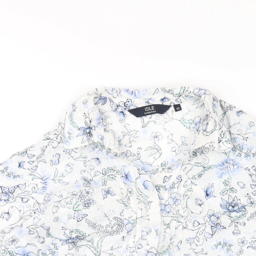 EWM Womens White Geometric Cotton Basic Button-Up Size 10 Collared