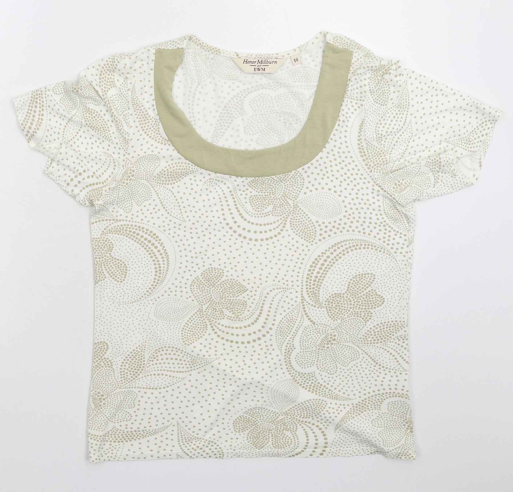EWM Womens White Polka Dot Basic T-Shirt Size 10