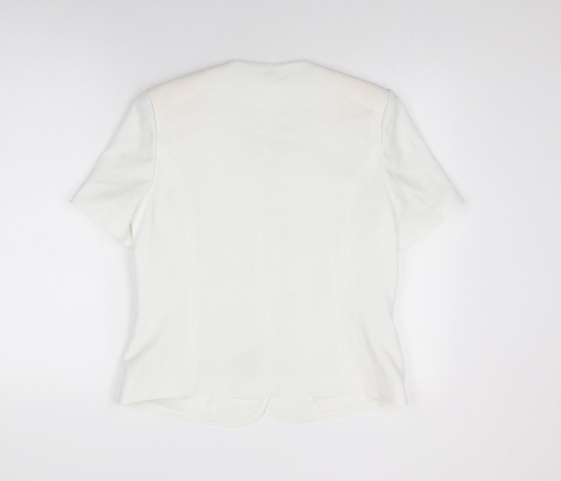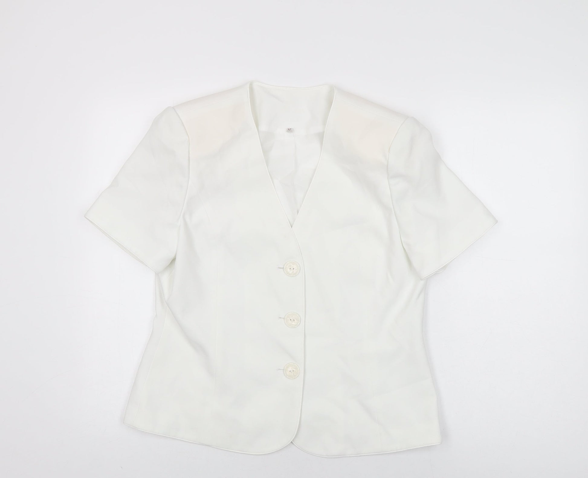 EWM Womens White Polyester Basic Button-Up Size 12 V-Neck
