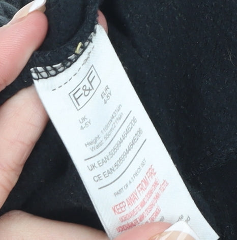 F&F Boys Black Jogger Trousers 4-5 Years Cotton Blend Elastic Waist