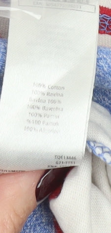 F&F Men’s Blue Red White Striped Polo Shirt L Cotton Casual