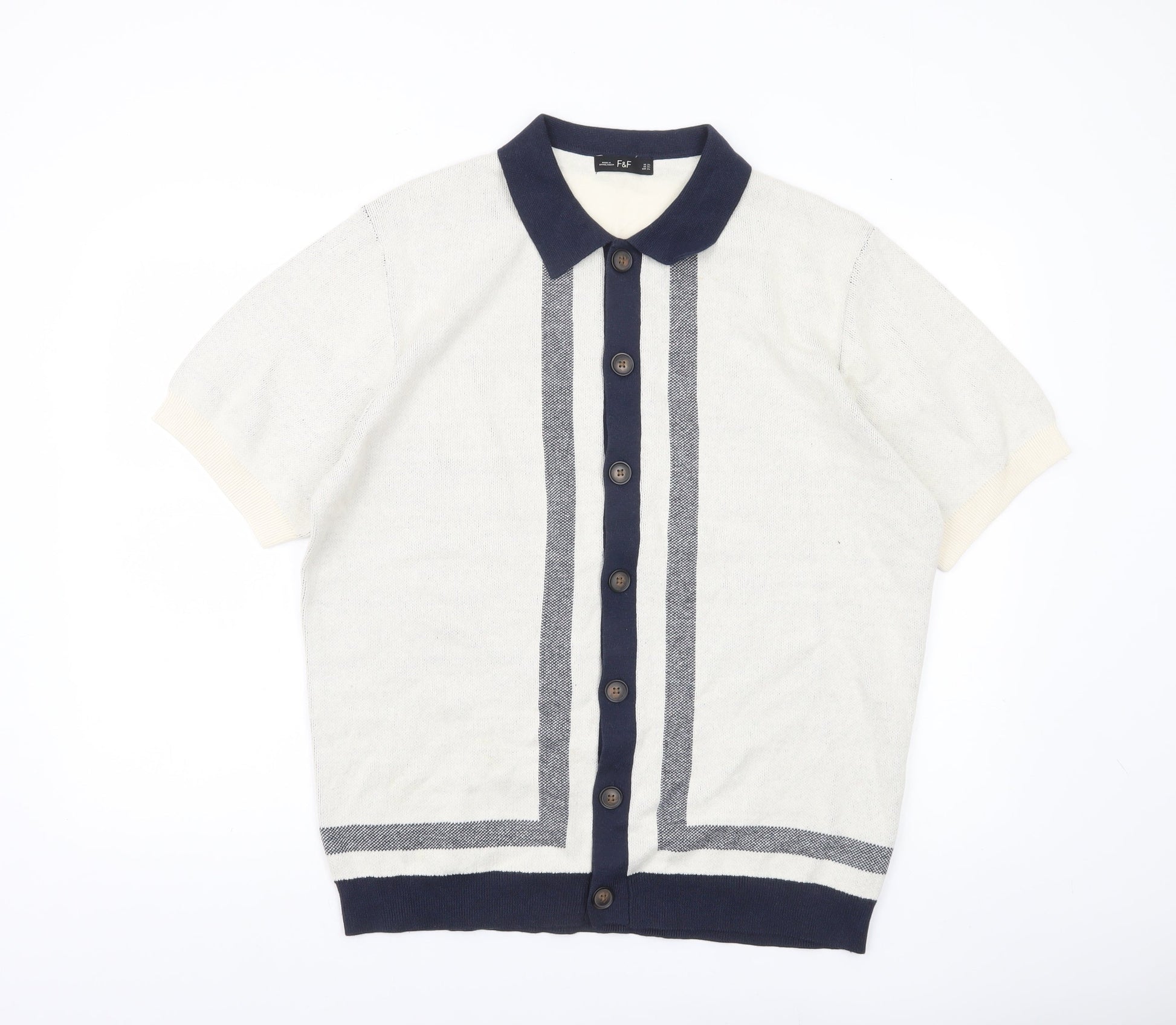 F&F Men’s Ivory XL Collared Short Sleeve Button Cardigan