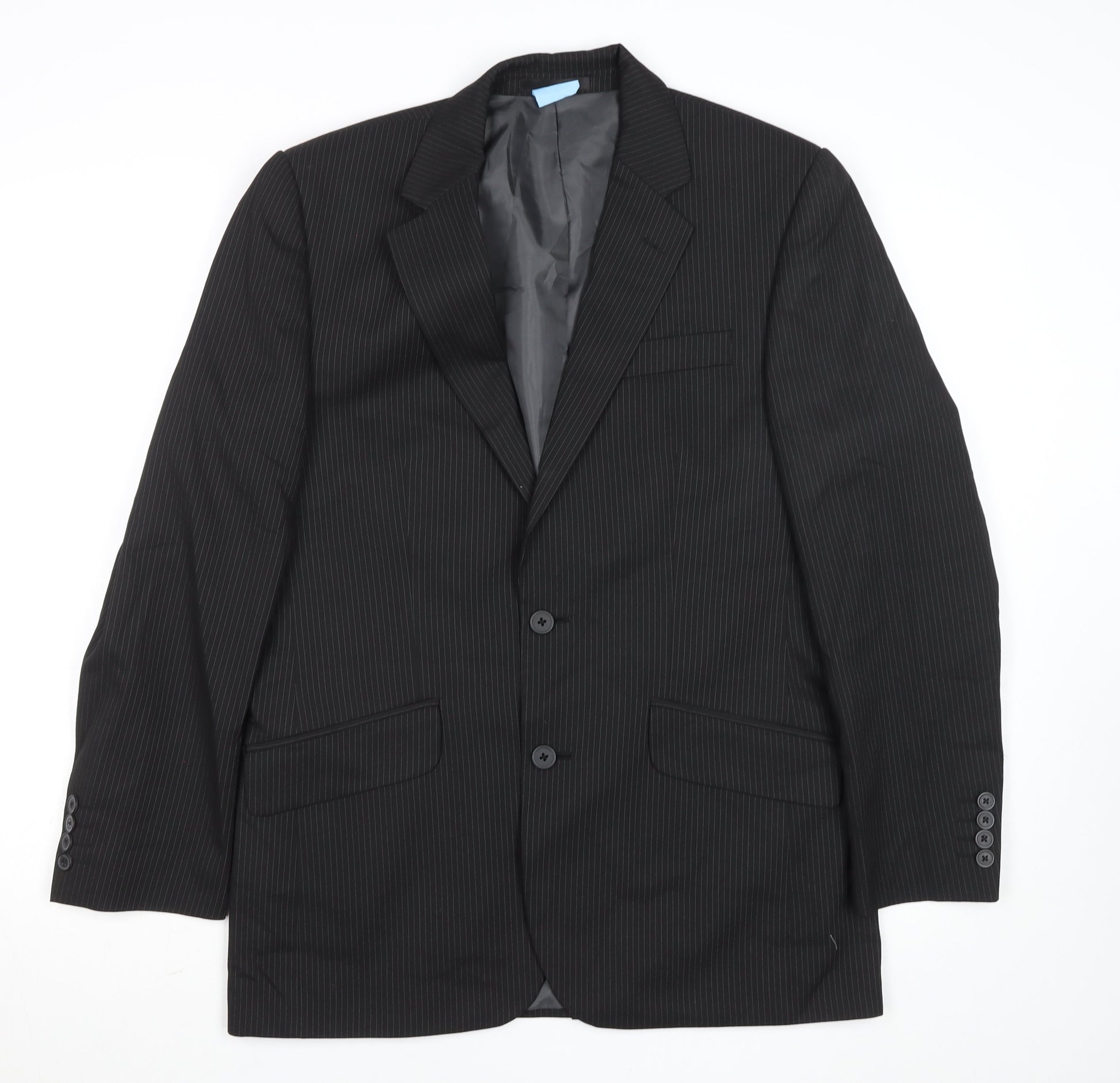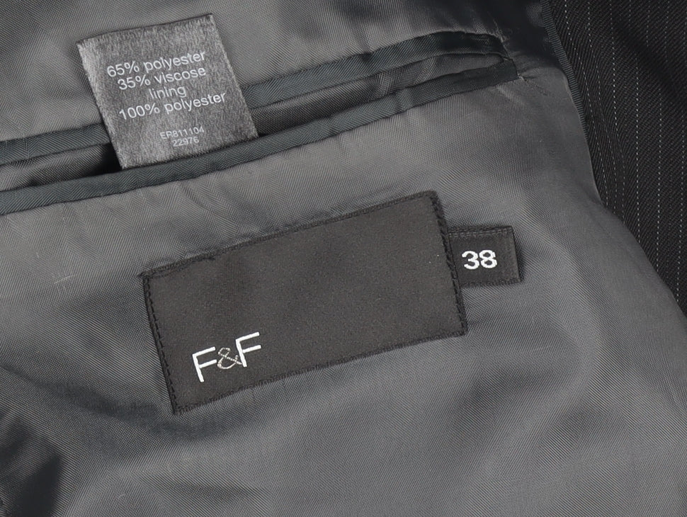 F&F Men's Black Pinstripe Blazer 38 Regular Two-Button Classic Fit