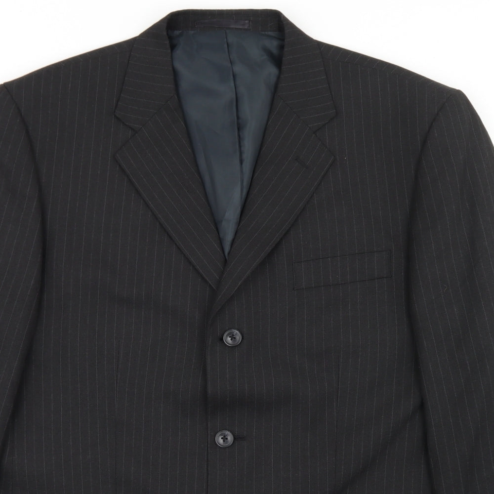 F&F Mens Black Striped Polyester Jacket Blazer Size 44