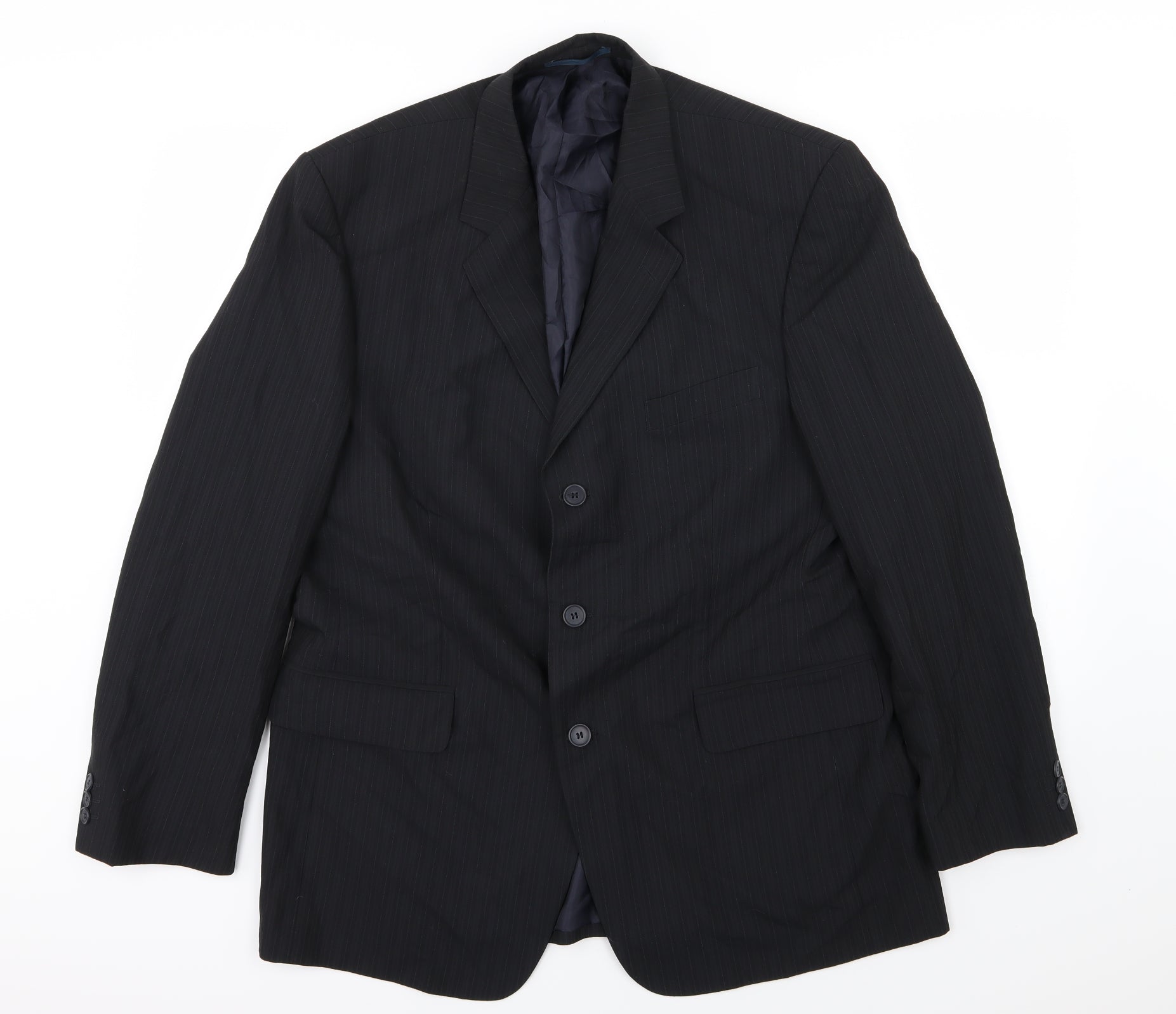 F&F Mens Black Striped Rayon Jacket Suit Jacket Size 44