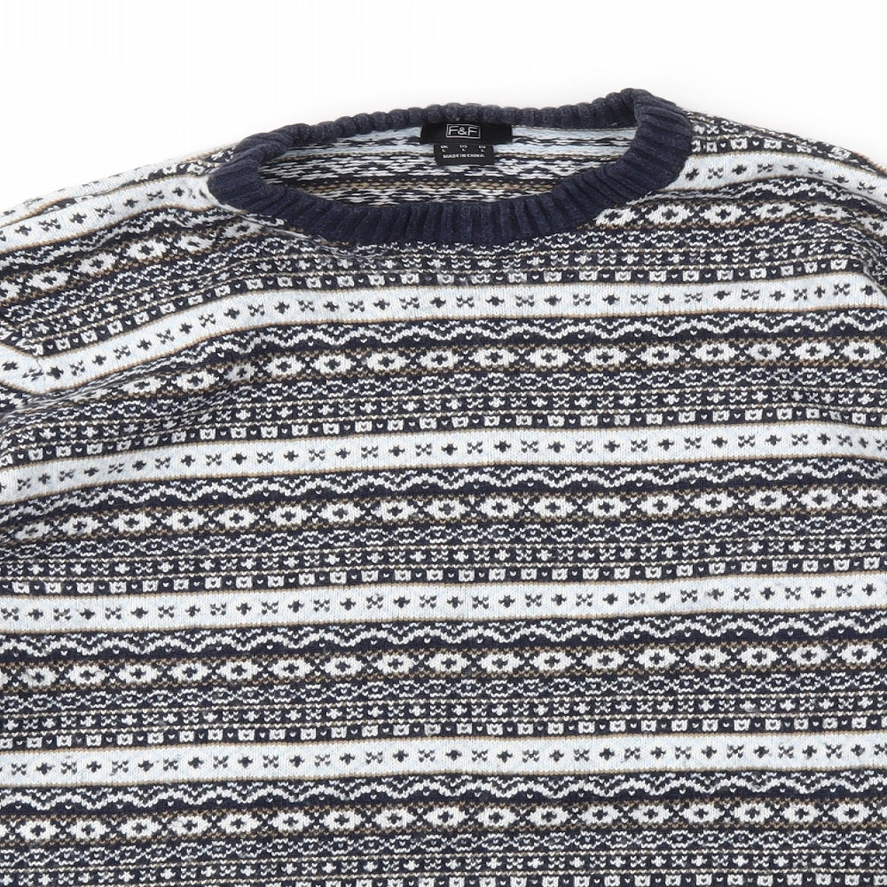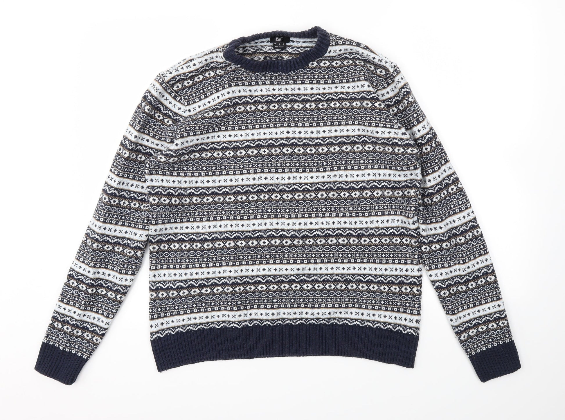 F&F Mens Blue Argyle/Diamond Pullover Sweatshirt Size L