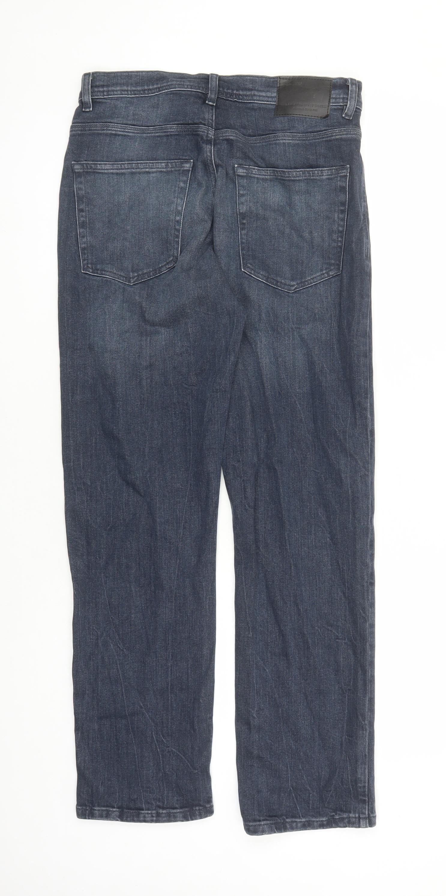 F&F Mens Blue Cotton Straight Jeans Size 32 in L30 in Regular Zip - Pockets