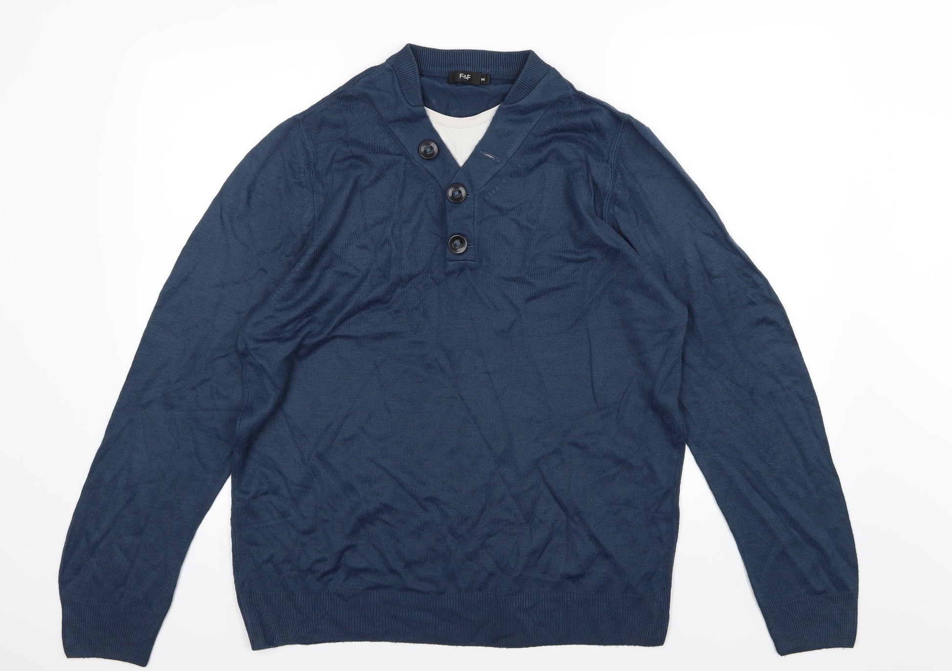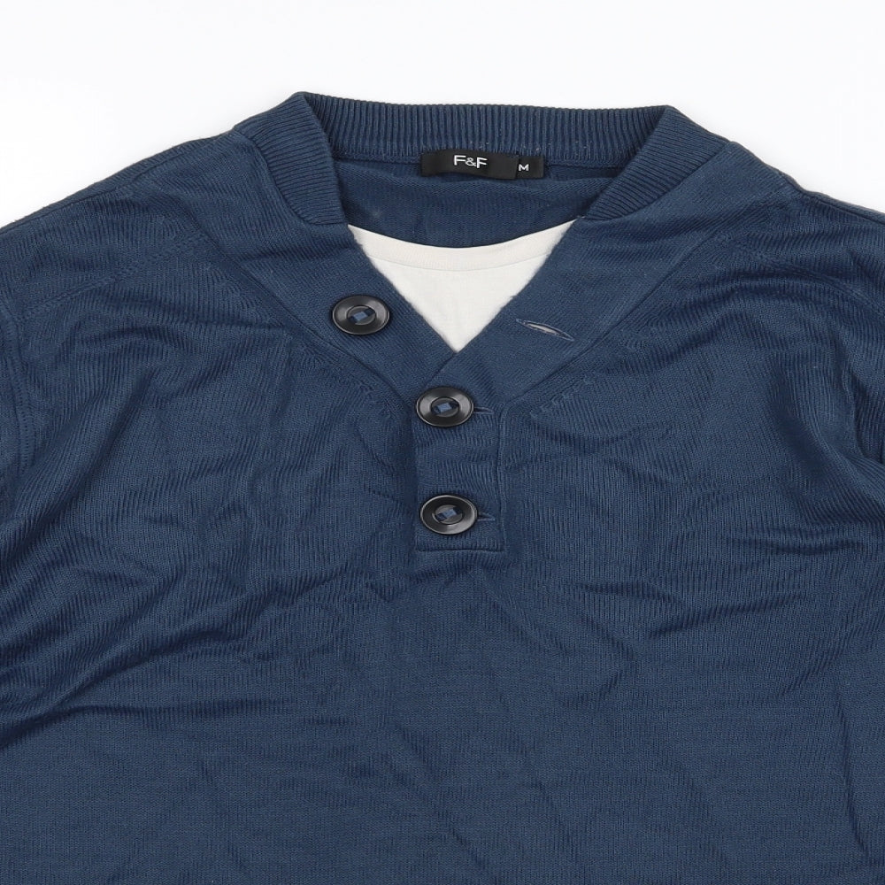 F&F Mens Blue Knit Pullover Jumper Size M