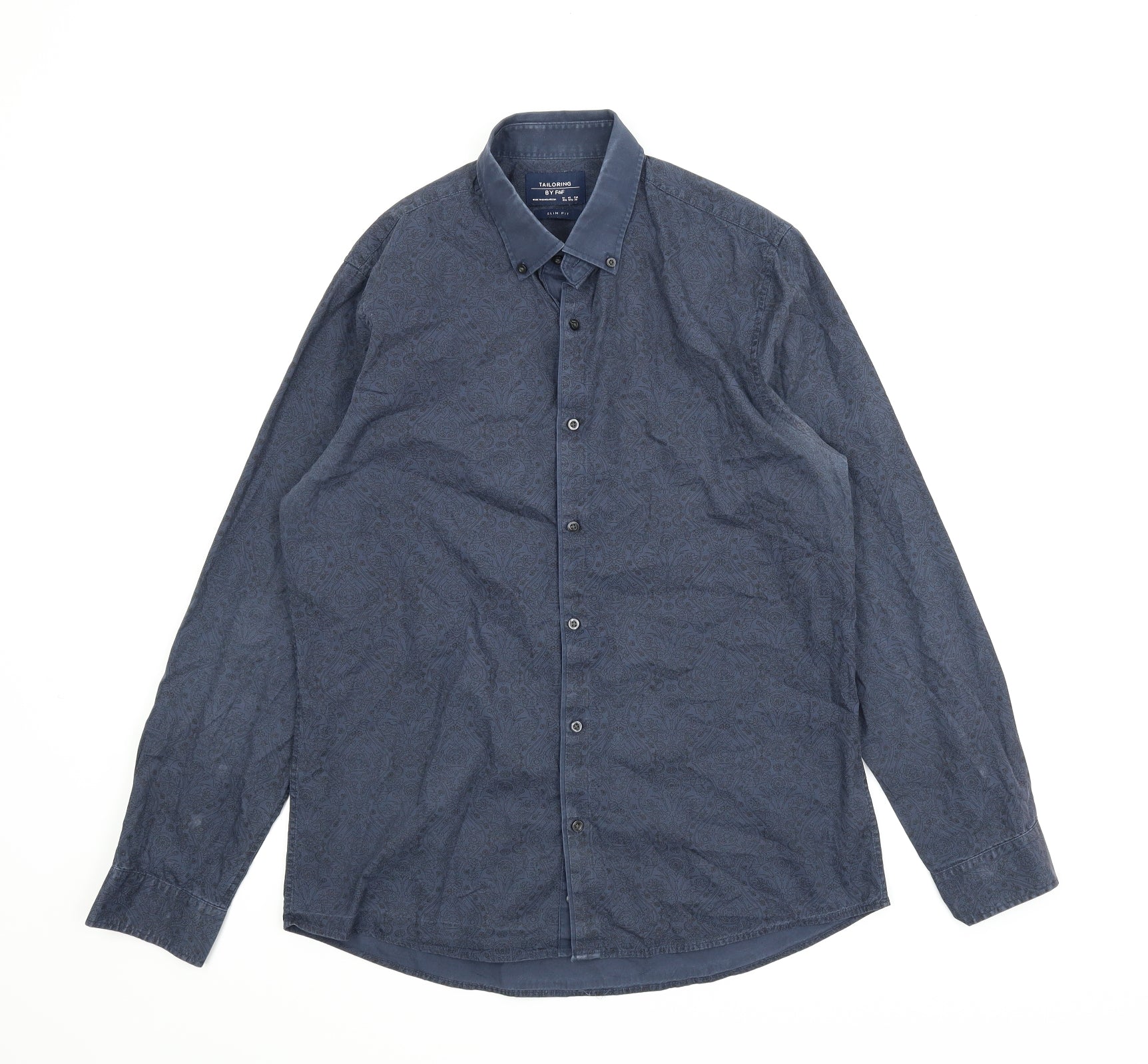 F&F Mens Blue Paisley Button-Up Size 15.5