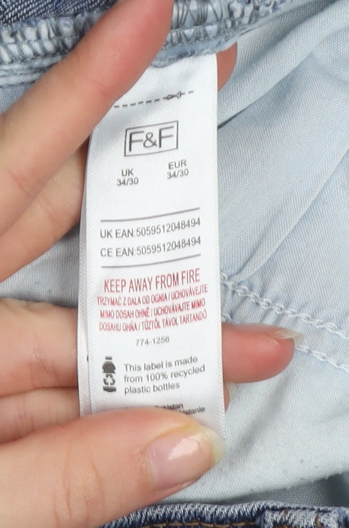 F&F Men's Blue Straight Leg Stretch Denim Jeans 34W 30L
