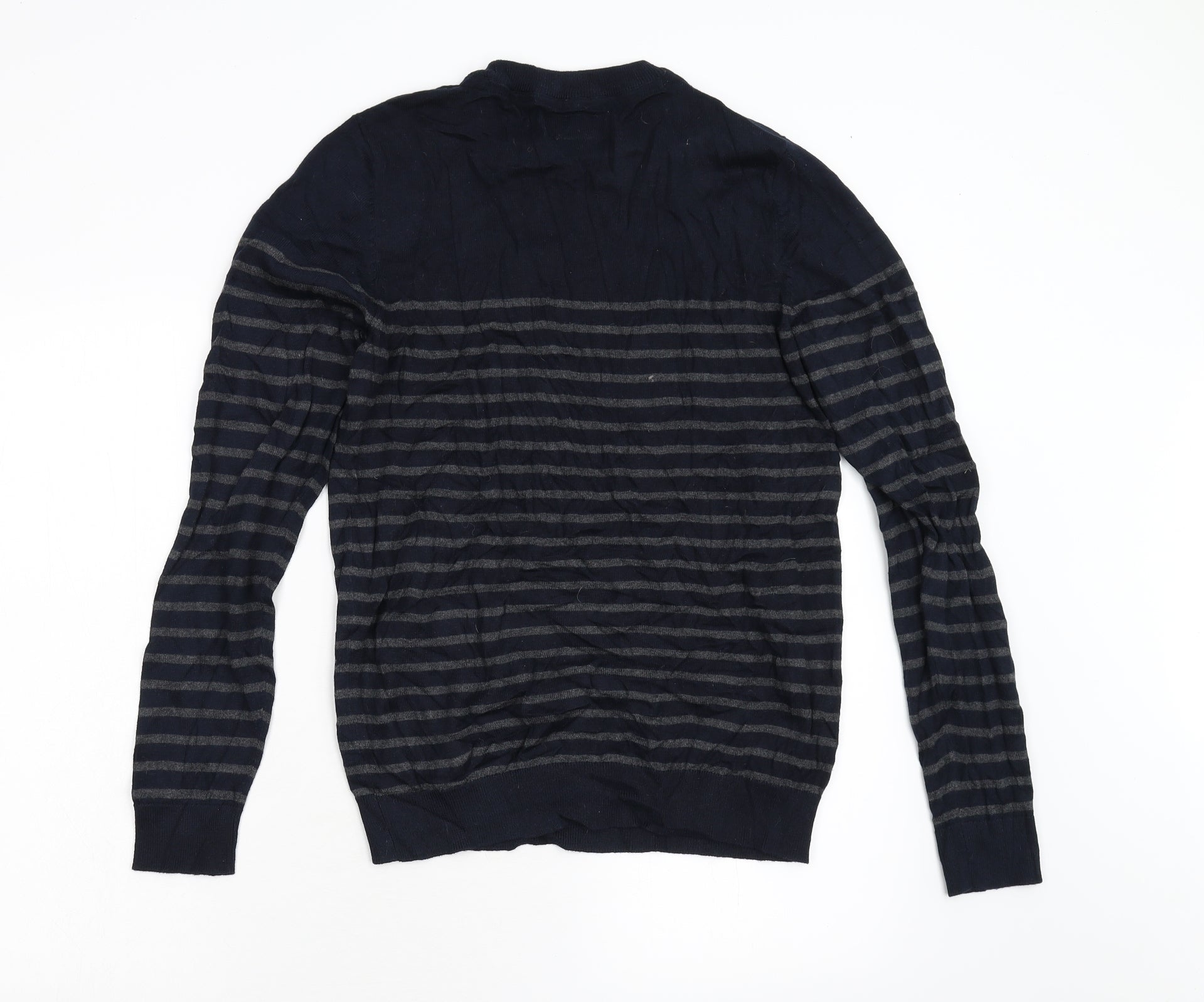 F&F Mens Blue Striped Knit Pullover Jumper Size S