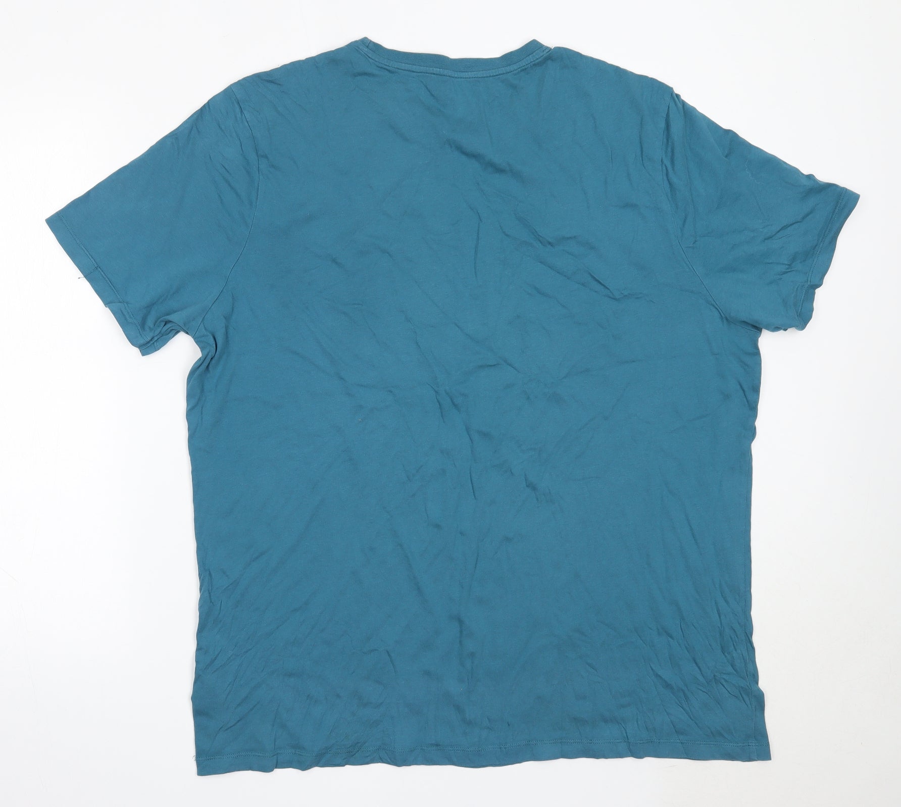 F&F Mens Green Cotton Button-Up Size 2XL Round Neck