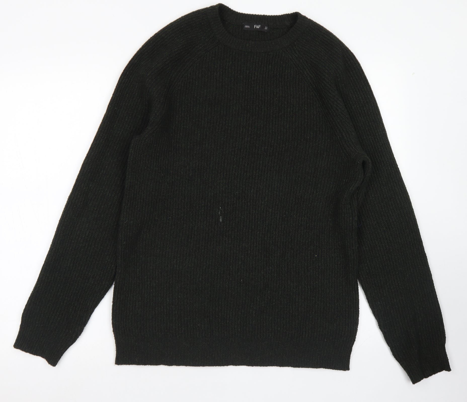 F&F Mens Green Crew Neck Polyester Pullover Jumper Size S
