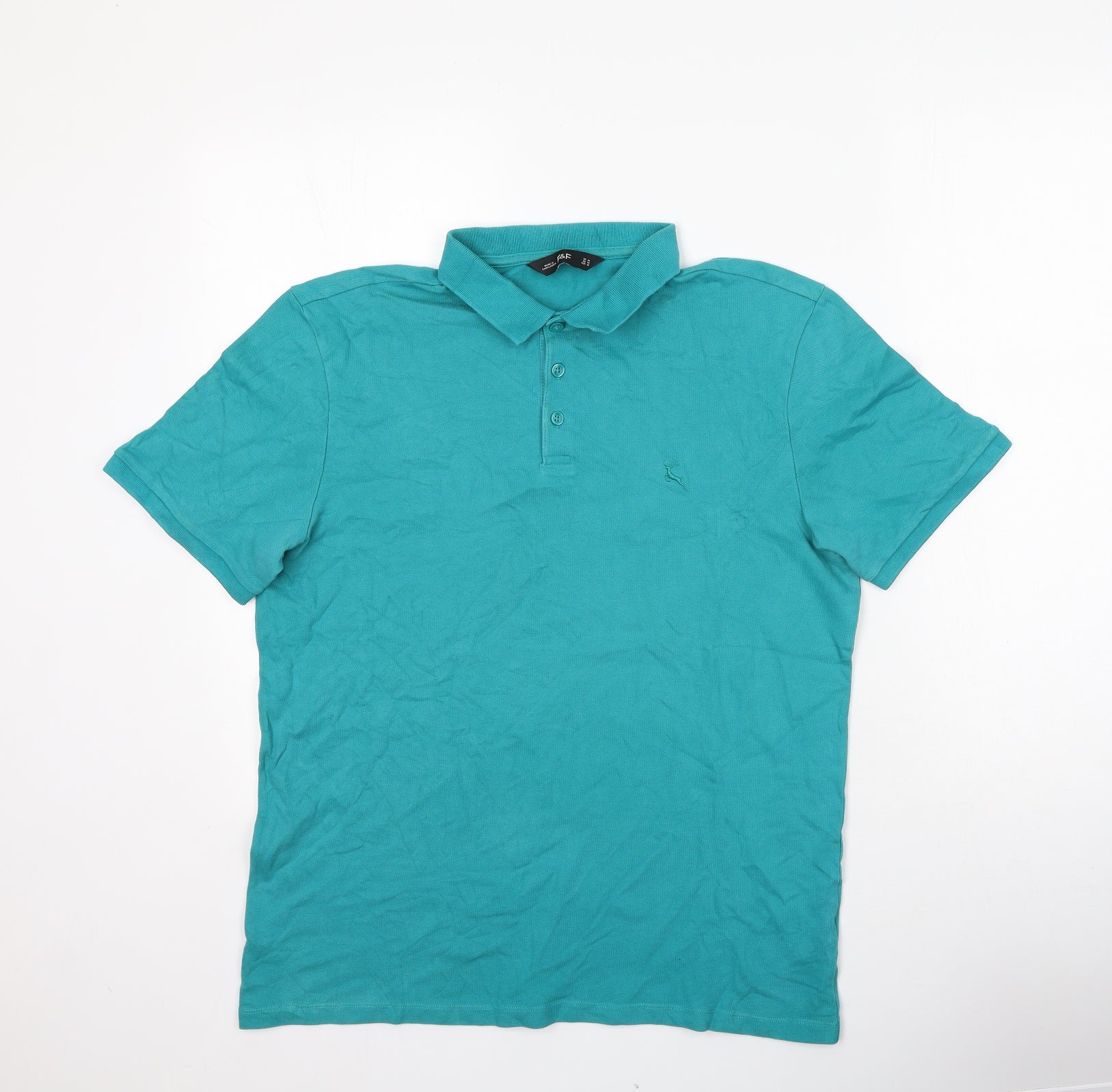 F&F Mens Green Polyester Polo Size M Collared