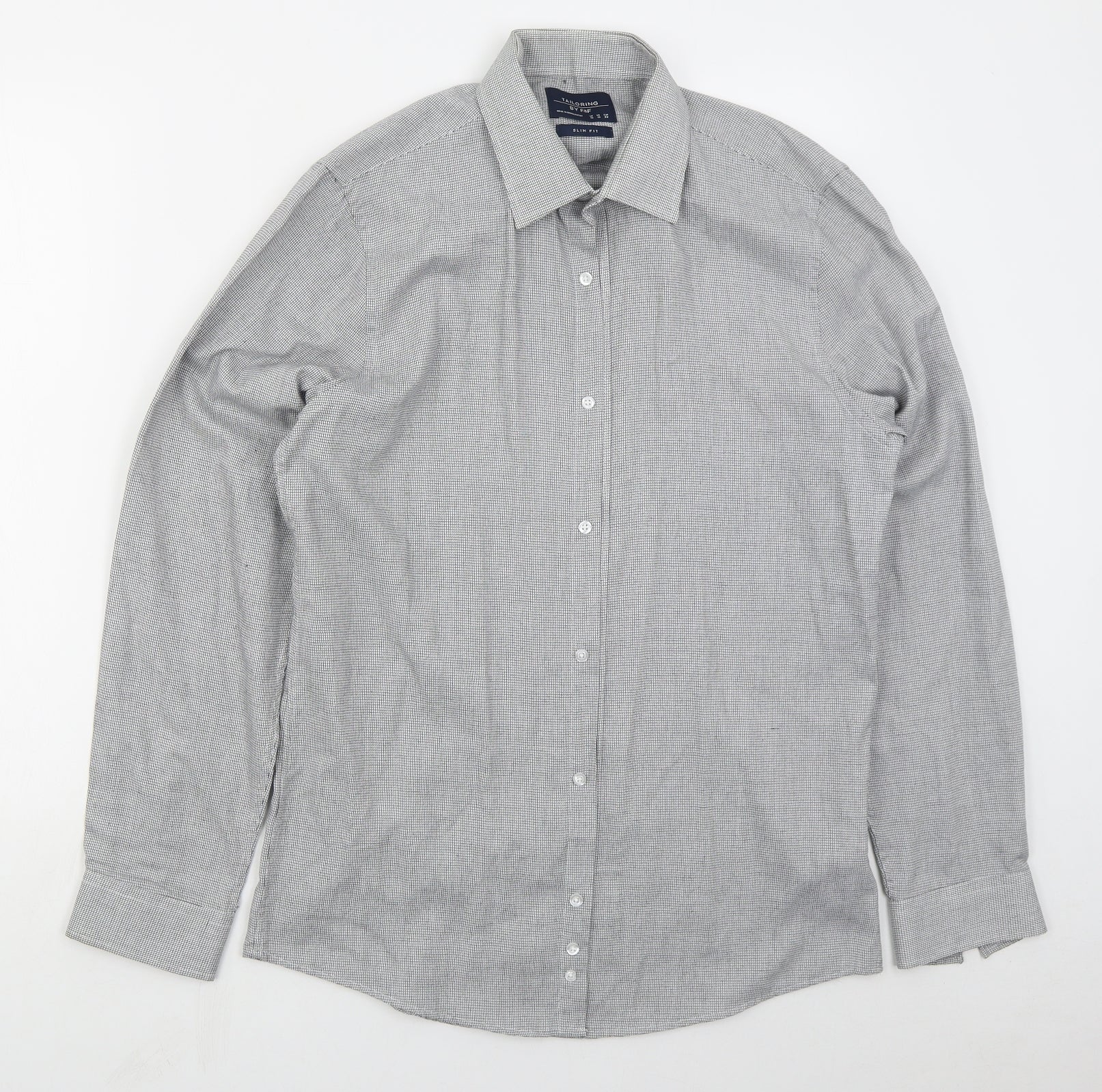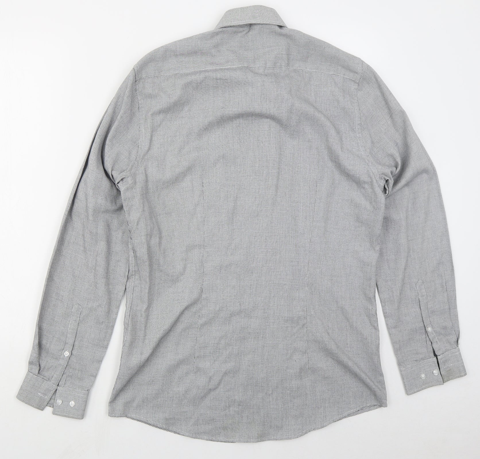 F&F Mens Grey Check Polyester Button-Up Size 15 Collared Button