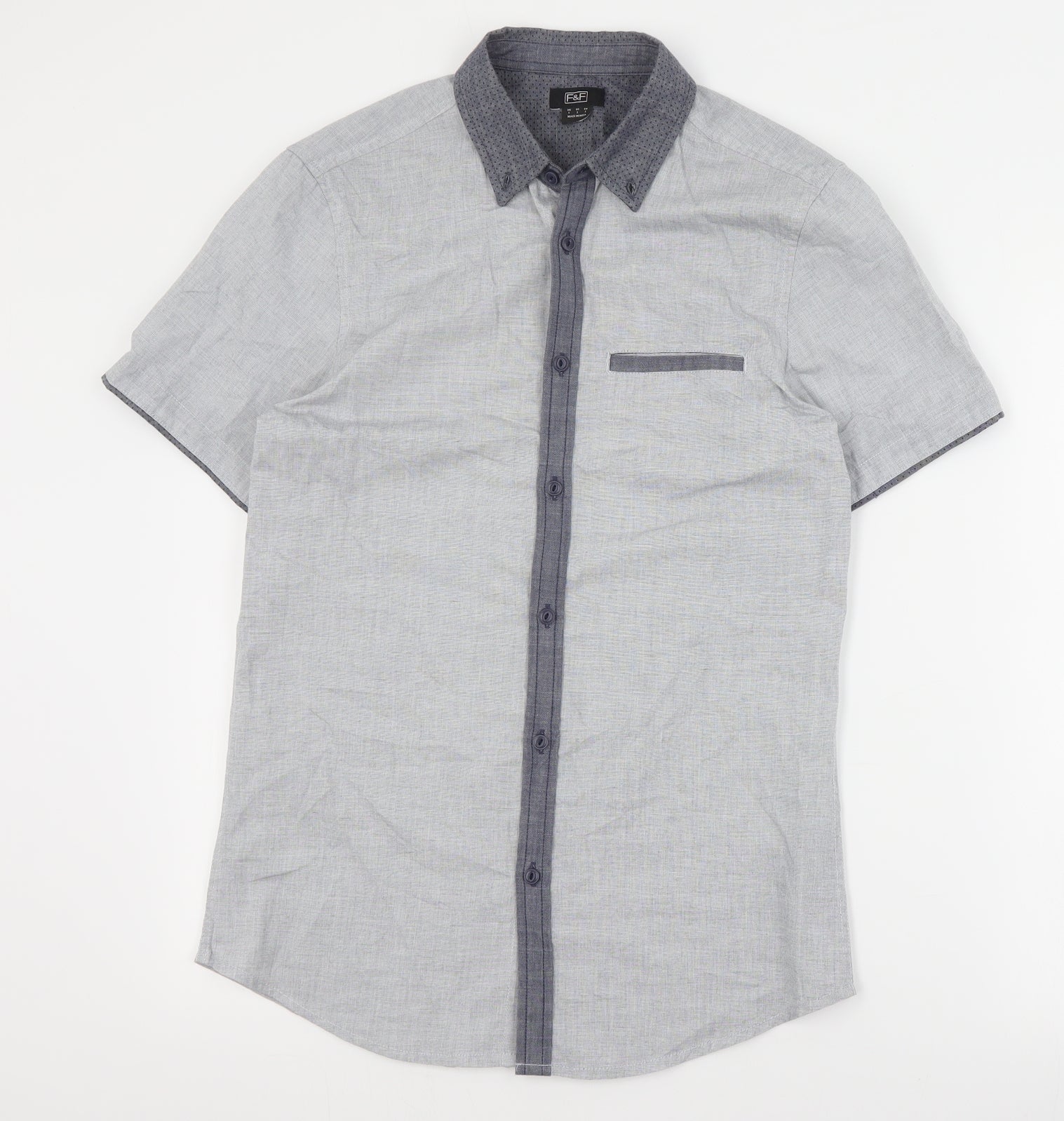F&F Mens Grey Cotton Button-Up Size S Collared Button