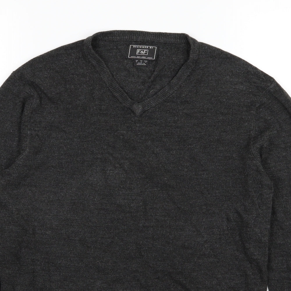F&F Mens Grey Knit Pullover Jumper Size S
