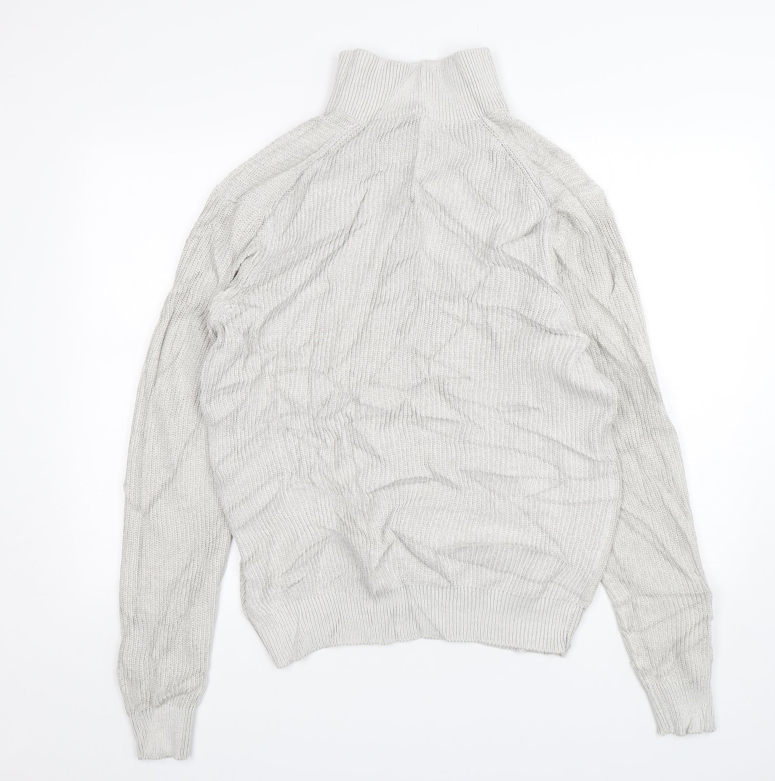 F&F Mens Grey Mock Neck Acrylic Pullover Jumper Size M