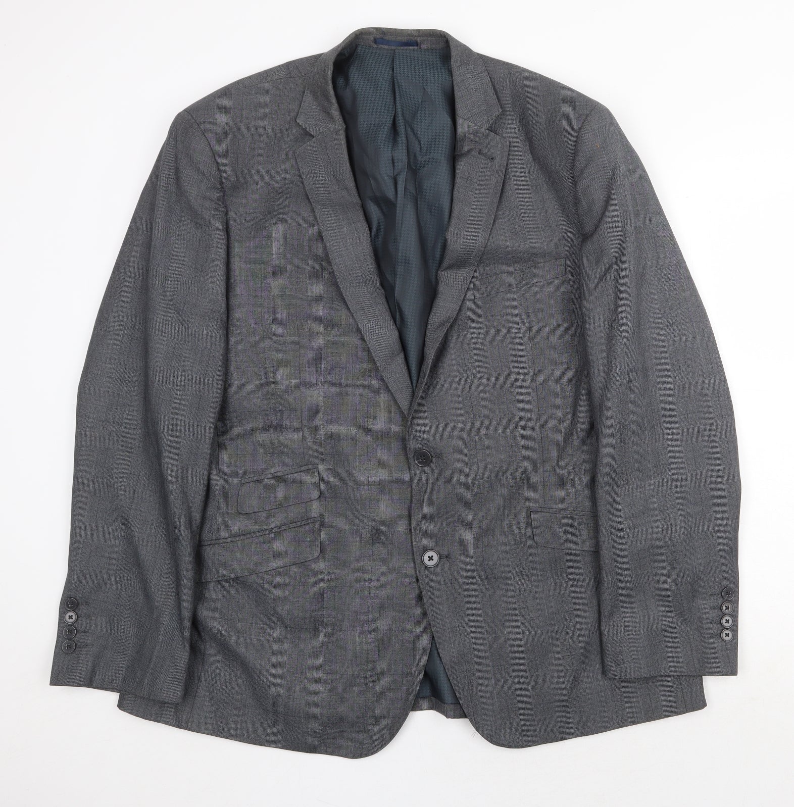 F&F Mens Grey Plaid Polyester Jacket Suit Jacket Size 46 Regular