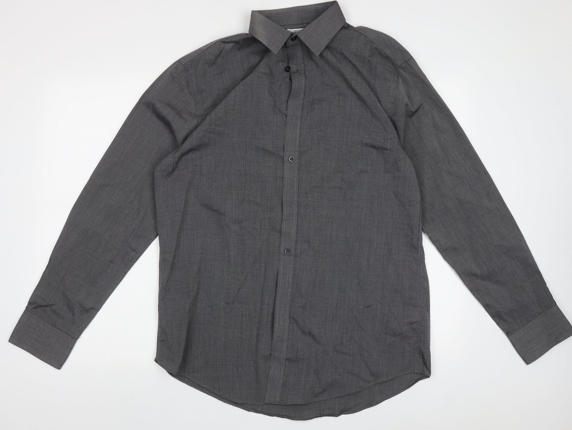 F&F Mens Grey Polyester Button-Up Size 15.5 Collared Button
