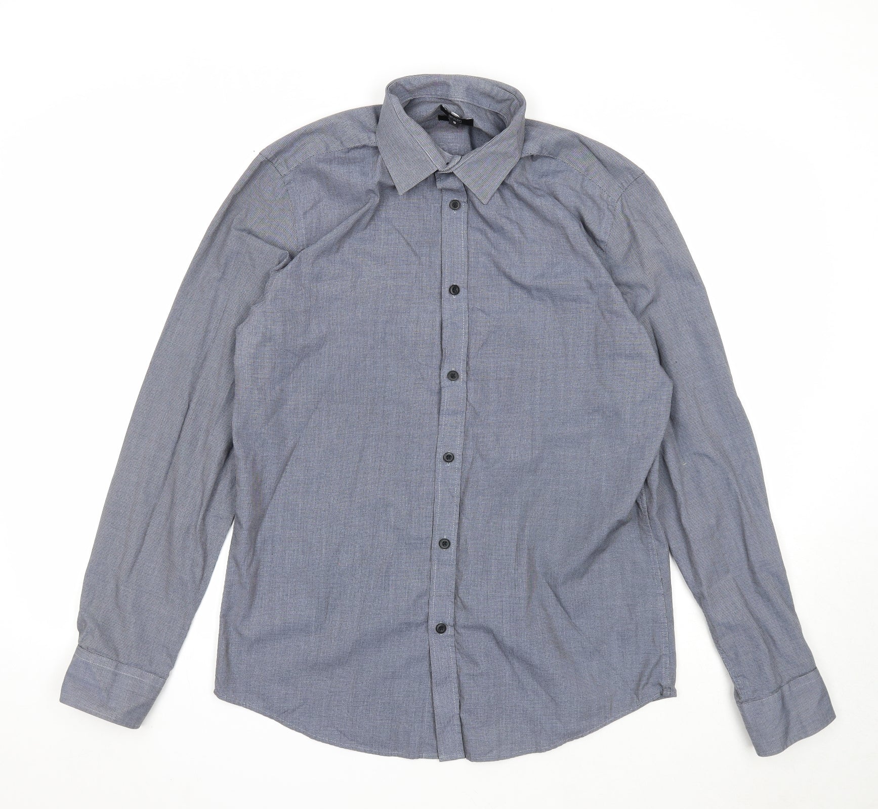 F&F Mens Grey Polyester Button-Up Size 16 Collared Button