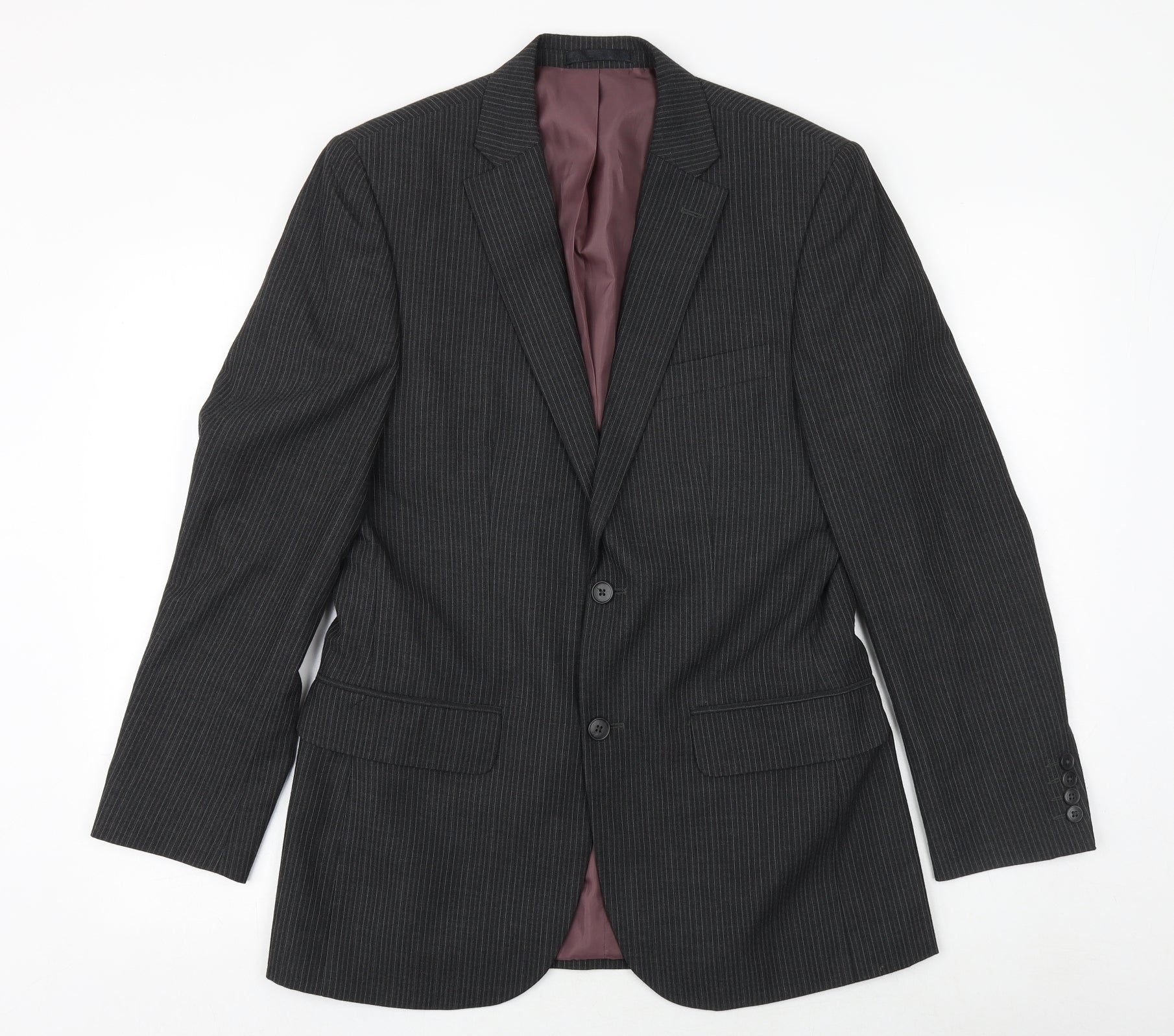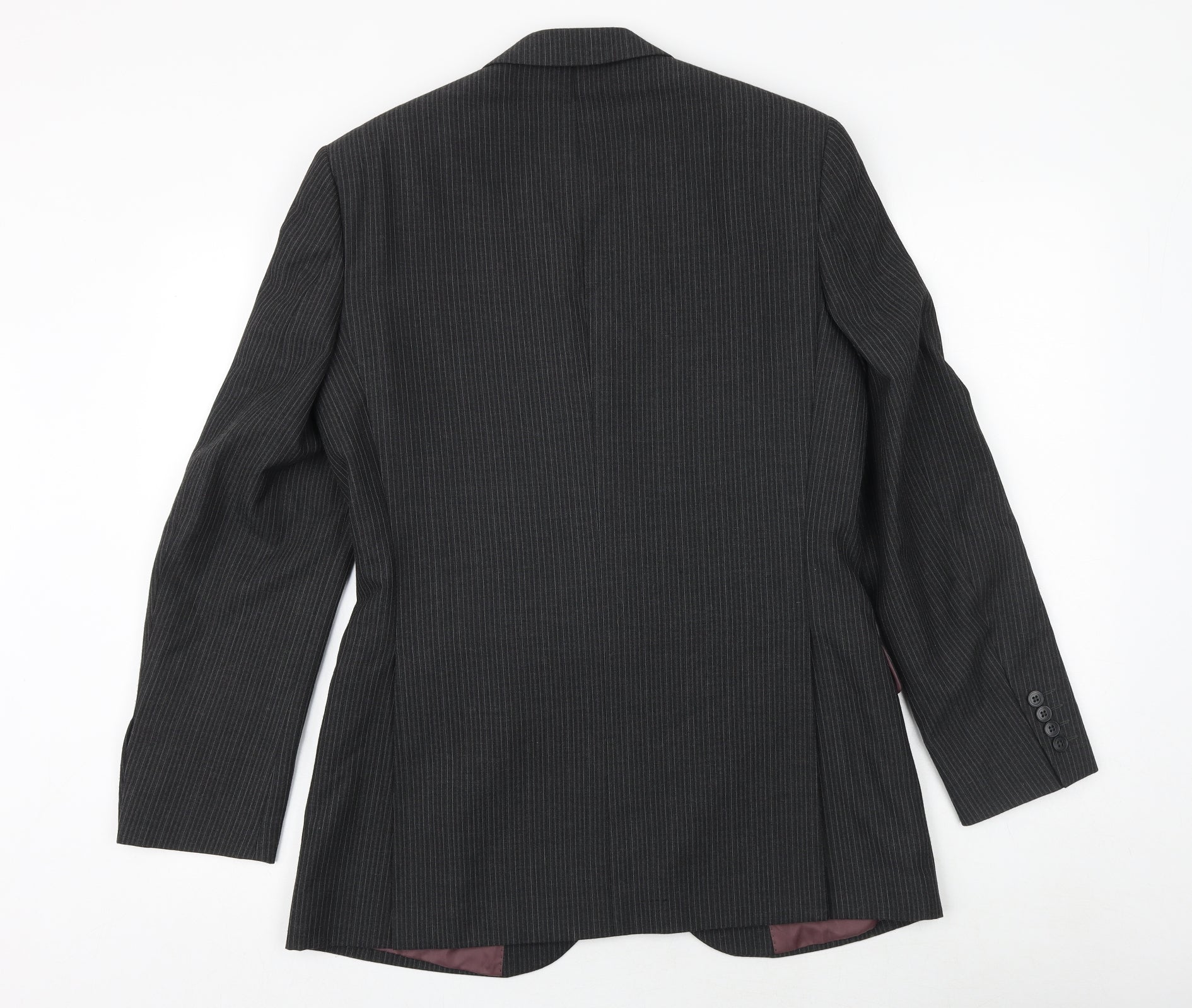 F&F Mens Grey Striped Polyester Jacket Suit Jacket Size 36 Regular