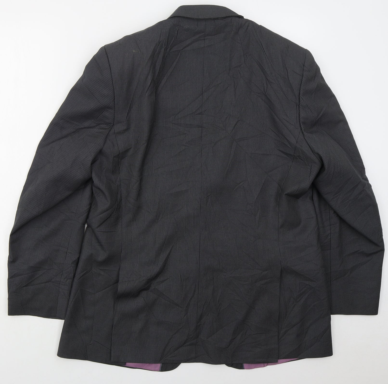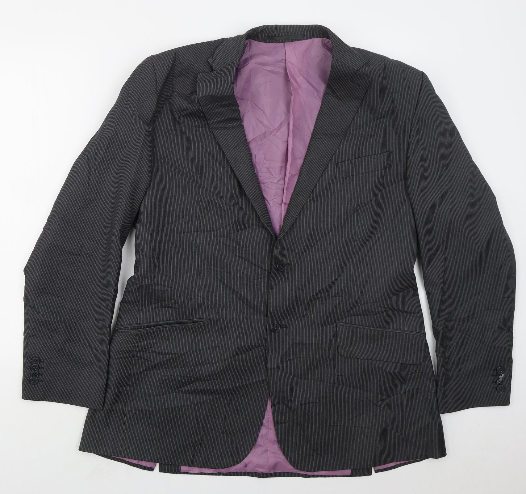 F&F Mens Grey Striped Polyester Jacket Suit Jacket Size 42