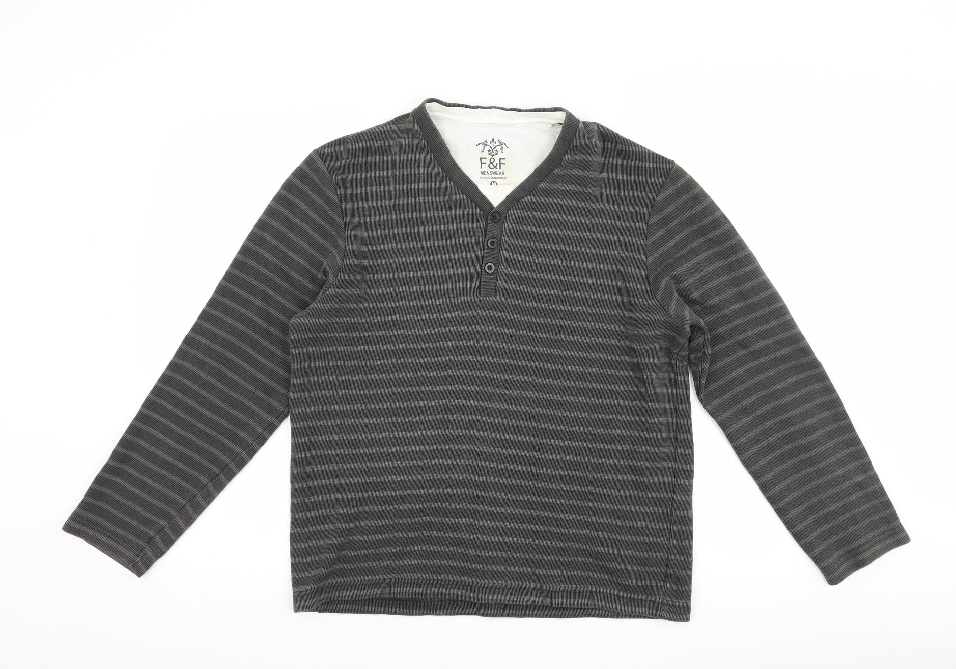 F&F Mens Grey Striped Pullover Jumper Size M