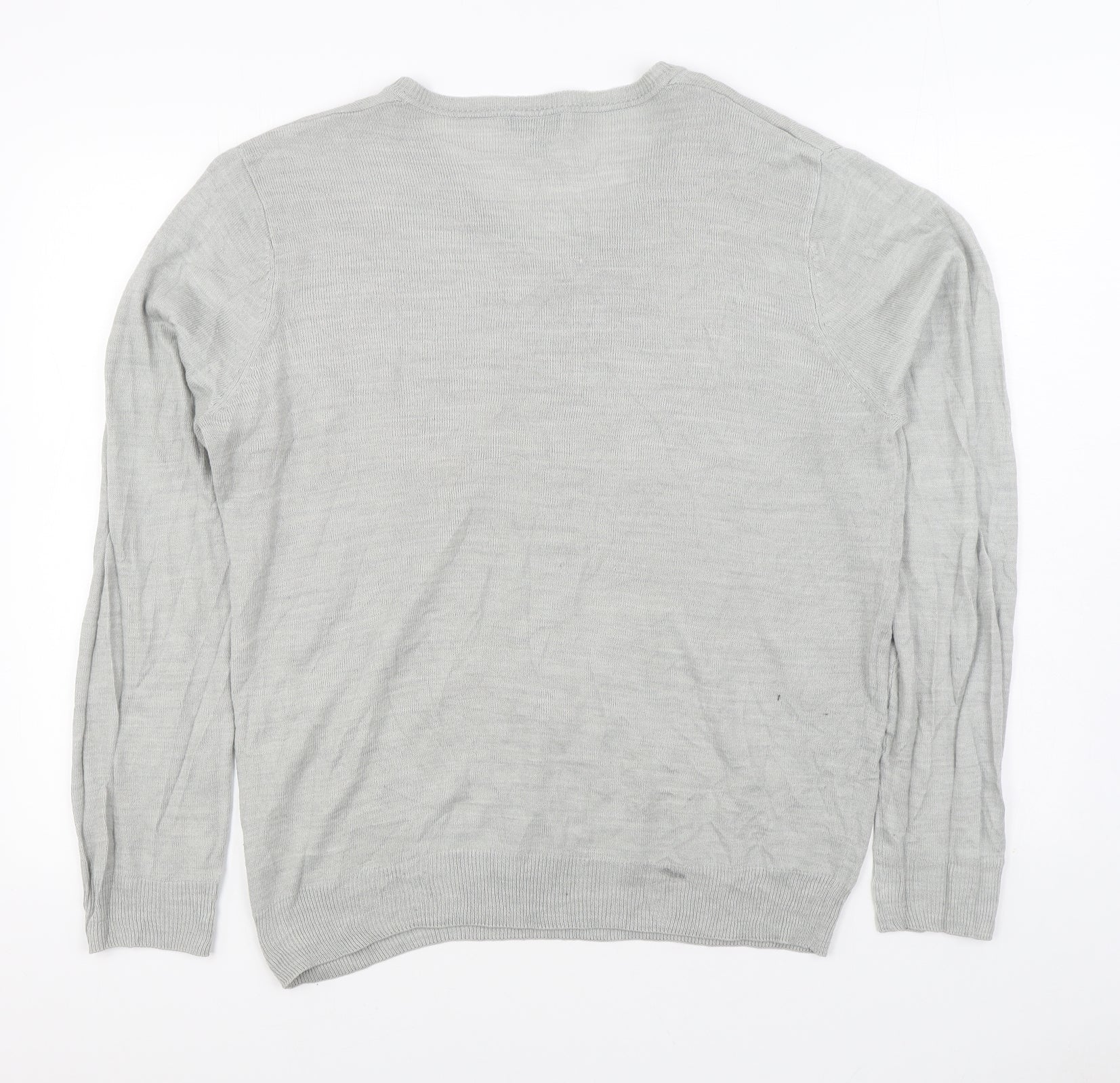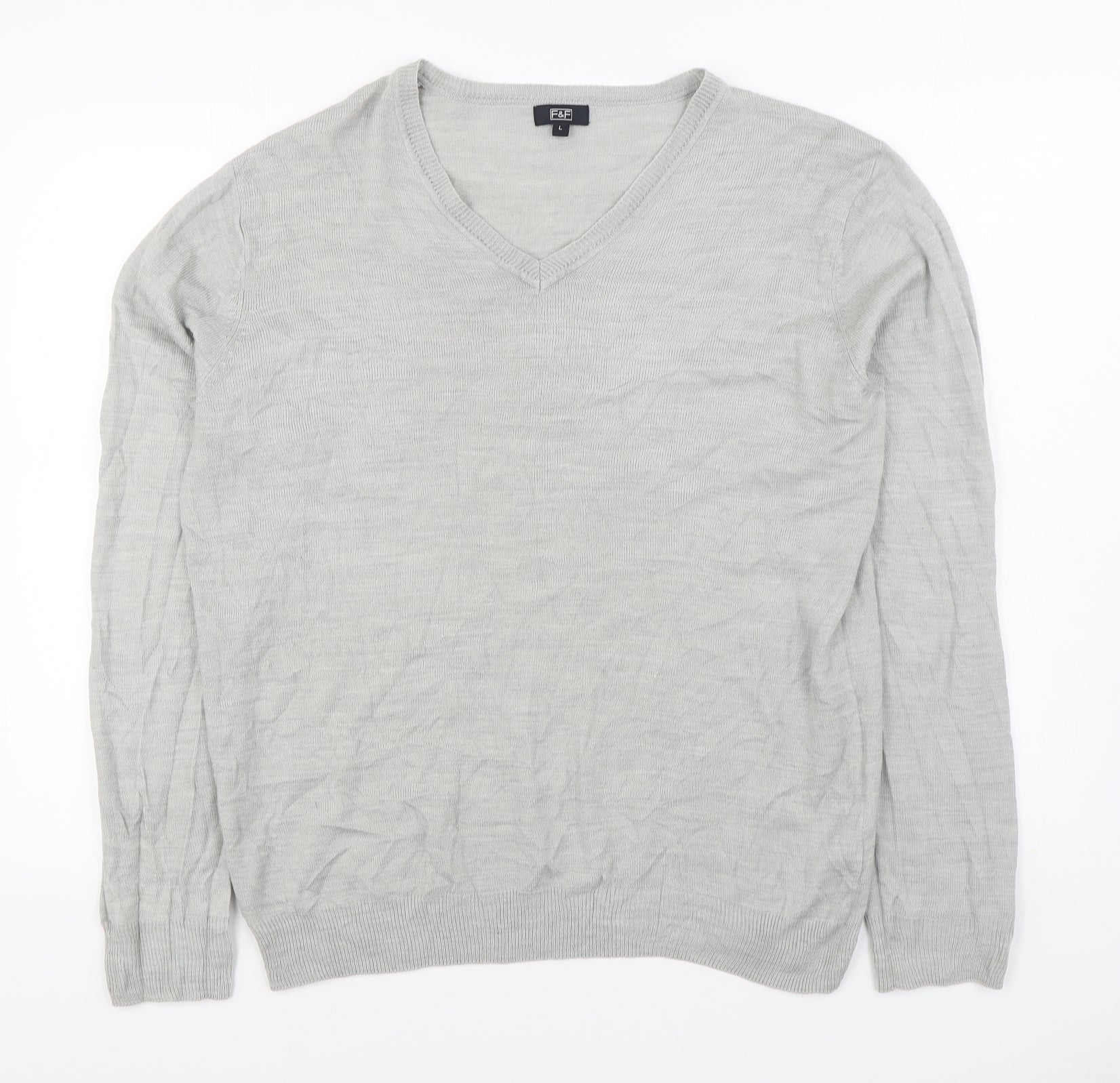 F&F Mens Grey V-Neck Acrylic Pullover Jumper Size L