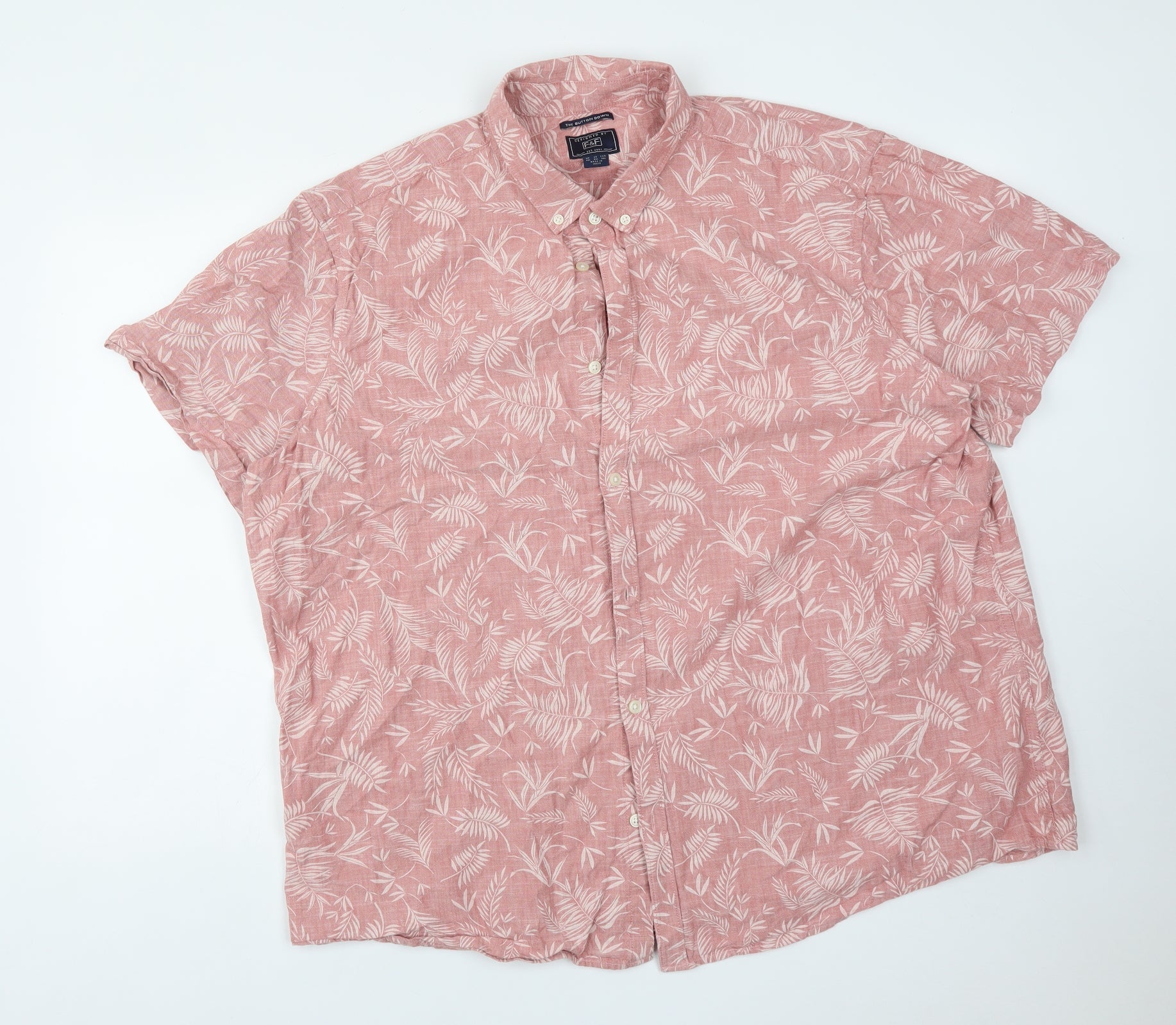 F&F Mens Pink Floral Cotton Button-Up Size 3XL Collared